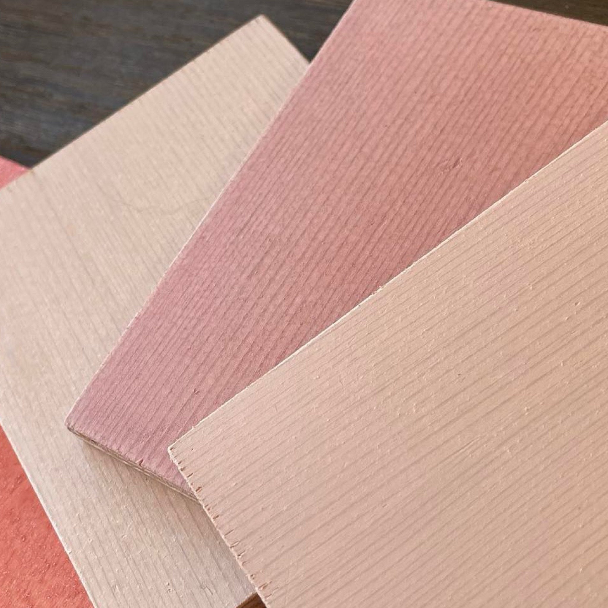 「アパレル業界の中で育ってきたので、色にはどうしてもこだわりがあって」とディレクター。思いついた深い桜色、ダークピンクの見本は何とネイルサロンで作ってもらったそう。