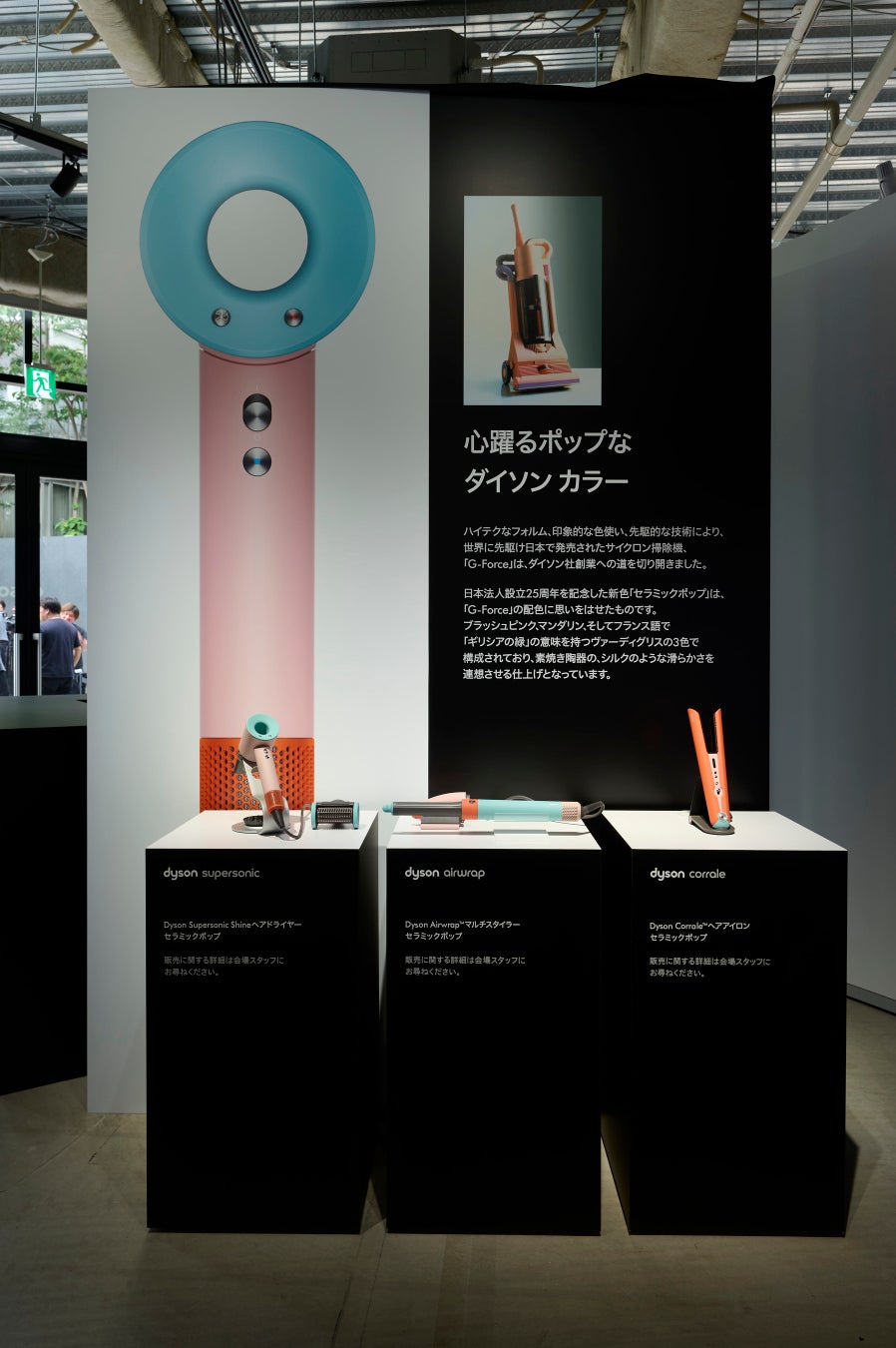 本イベントは、最新製品ができるまでの過程や、プロのヘアスタイリストによるスタイリングサービスも無料でお楽しみいただけます。また、会場内のヘアサイエンス&ビューティーラボに て、ご自身の髪の健康状態を確認できたり、テクノロジーとエンジニアリングを軸に教育や農業分野で新たな試みに取り組む、ダイソンの「現在」もご覧いただけます。5月24日から5月28日まで、様々なコンテンツが体験でき、最新の製品も購入可能なスペースです。イベント詳細や事前予約については、こちら(https://dyson-japan-25th-event.jp/)を確認ください。