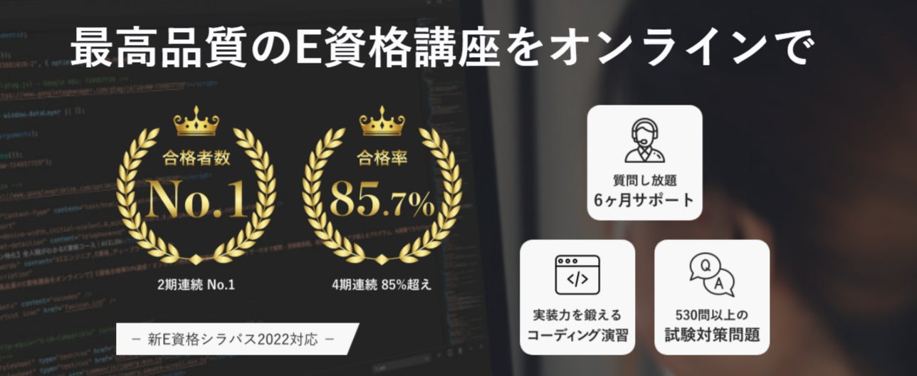 本コースの修了者のE資格合格率は「4期連続で85%超、2期連続で合格者数No.1(※)」を達成しており、継続してAIエンジニアを目指す皆様をご支援して参りました。