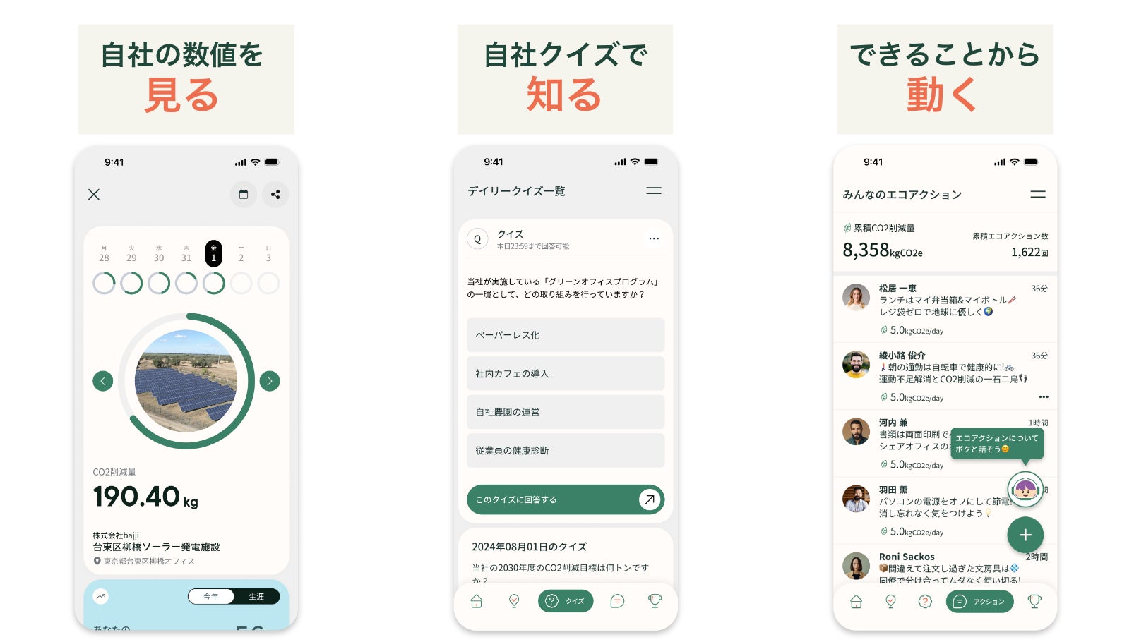●動く:自社が推奨する「エコアクション」をセットできます。一般的なエコアクションも設定可能です。