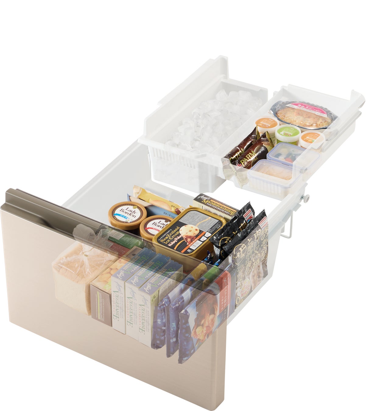 整理整頓がしやすい2段式バスケット構造。冷凍室がまんなかに位置しているので食材の出し入れがスムーズです。