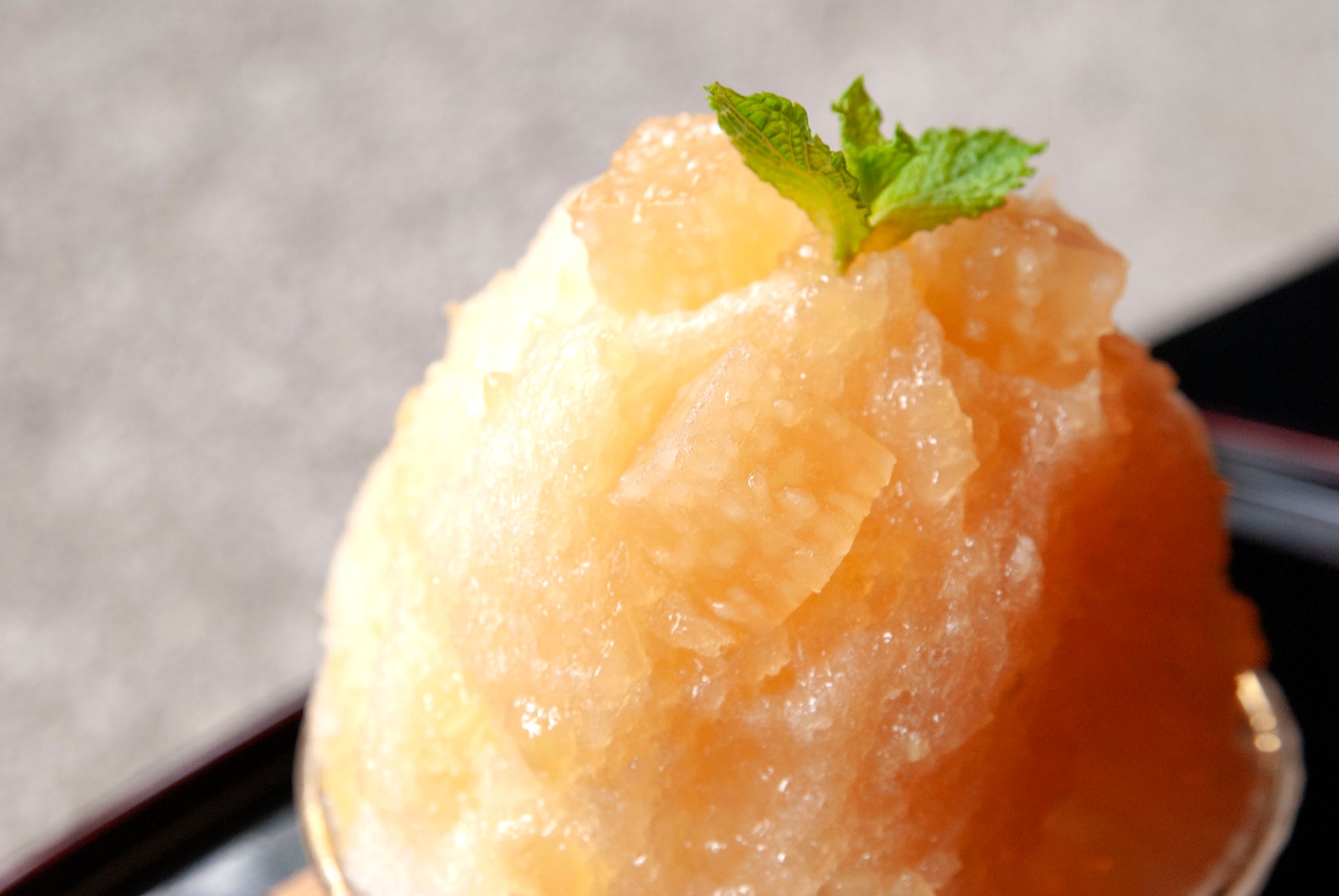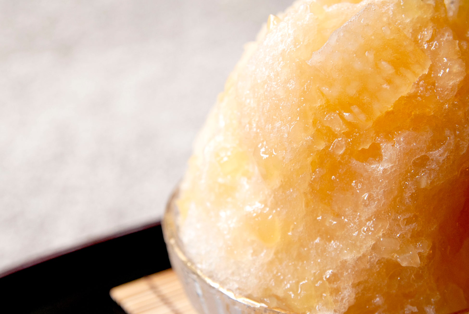 りんごの果肉のシャキシャキ食感を活かし、白蜜やりんごジュペなどを独自の配合でブレンドした特製「りんご蜜」をたっぷりとかけました。晩夏から初秋、まだまだ暑さの続く季節にとってもうれしい、甘く香しい美味しさ。ふわふわ・しゃりしゃり繊細な氷のくちどけをぜひご賞味ください。