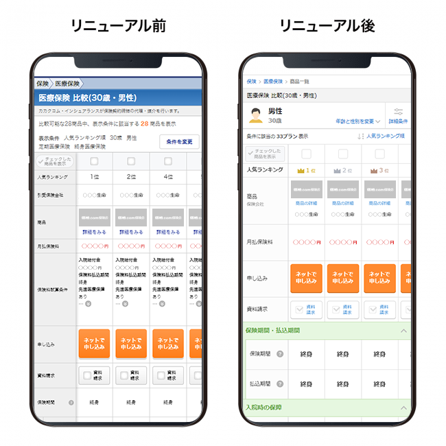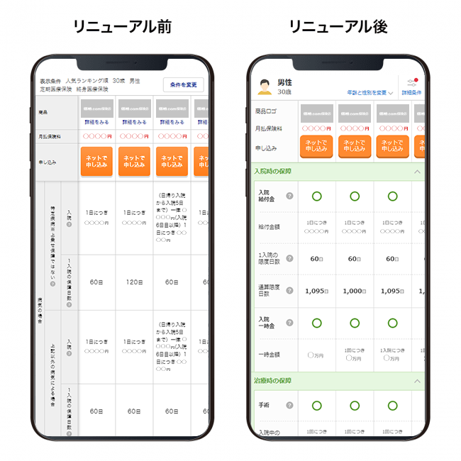 「比較項目」の拡充、デザインの刷新で、医療保険をもっと選びやすく!