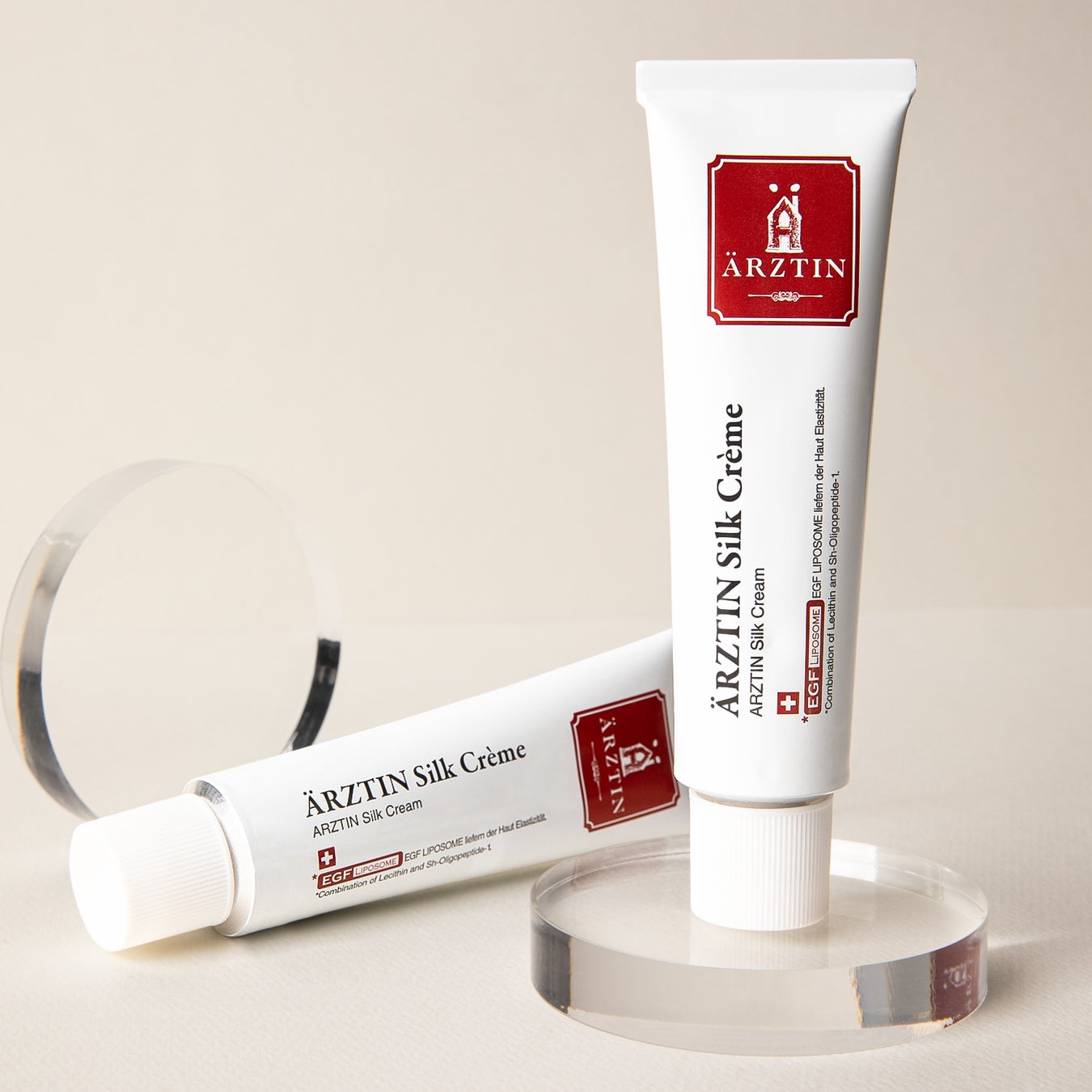 エルツティンすべてのラインアップで人気No.1の『シルククリーム』は、乾燥などのダメージから肌を守ってうるおいを与えるトータルマルチクリーム。ハリとツヤを与えるナノリポソーム化したEGF成分と2つのペプチド(EGF・IGF)、アデノシンやエンド豆エキス成分配合で肌にハリ・弾力を与えてすこやかなに保ちます。セラミドNPやアルガンオイル配合で肌にうるおいツヤを与え、ブラックカラントシートオイル、ビフィズス菌培養溶解質配合で荒れた肌を整え、明るいトーンへ導きます。お手入れ後はハリのあるぷるぷるななめらか肌に。敏感肌などのセンシティブな肌にも使えます。