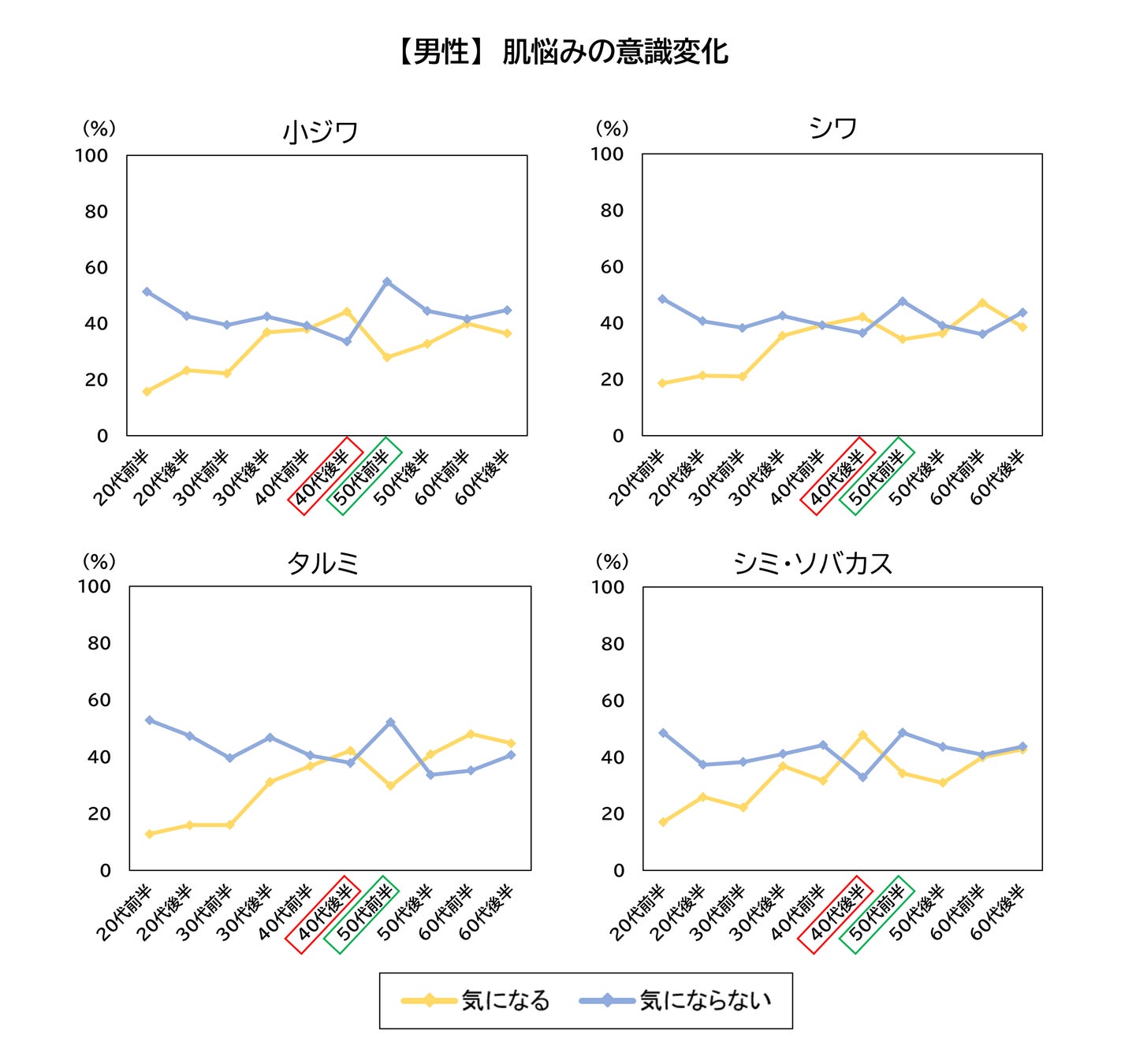 肌悩みの男女の意識差──男性は低く、年齢を重ねても高まらず
