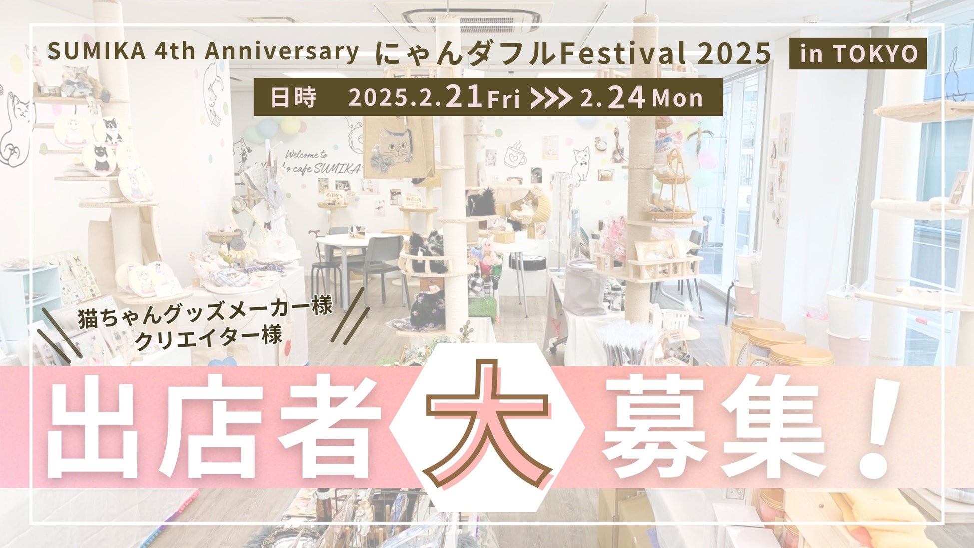 株式会社TIRAMISU(本社:東京都世田谷区 代表取締役:高澤 匡 以下「当社」)が運営する 猫ぐらしブランド「キミとワタシのSUMIKA」は2025年2月21日から2月24日の4日間に渡り「東京都中小企業会館」1Fイベントスペース(東京都中央区銀座2-10-18)にて、ブランド生誕4周年記念イベント、SUMIKA 4th Anniversary『にゃんダフルFestival 2025 in TOKYO』を開催いたします。
