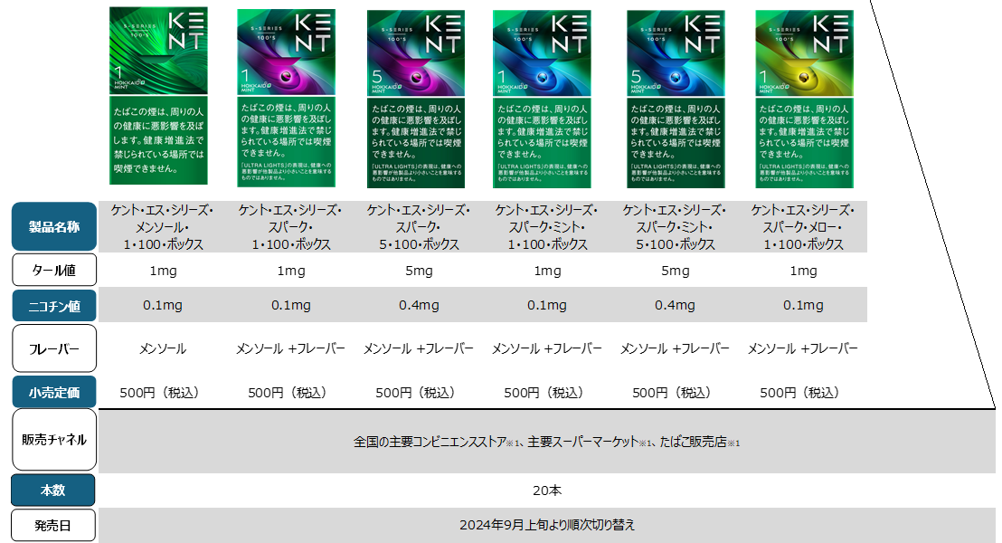 BATジャパン(正式名称:ブリティッシュ・アメリカン・タバコ・ジャパン合同会社、本社:東京都港区、社長:エマ・ディーン)は、紙巻たばこ「KENT(ケント)」全13銘柄について、パッケージとスティックのデザインをリニューアルし、9月上旬より、全国の主要コンビニエンスストア(※1)、主要スーパーマーケット(※1)たばこ販売店(※1)にて順次切り替えます。
