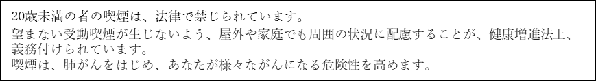 BATグループでは、たばこ製品のマーケティングを適切に実施するために国際的な自主規準を設定しています。そのため消費者に対するたばこ製品に関するすべてのコミュニケーションには、20歳未満の方へのコミュニケーションをお控えいただくとともに、「喫煙と健康に関する注意文言」を表示することを関係各位にお願いしております。紙巻たばこに関しては、記事掲載していただく際には、「健康に関する注意文言」が表示されるようご配慮いただきたく存じます。ご協力の程、何卒よろしくお願い申し上げます。
