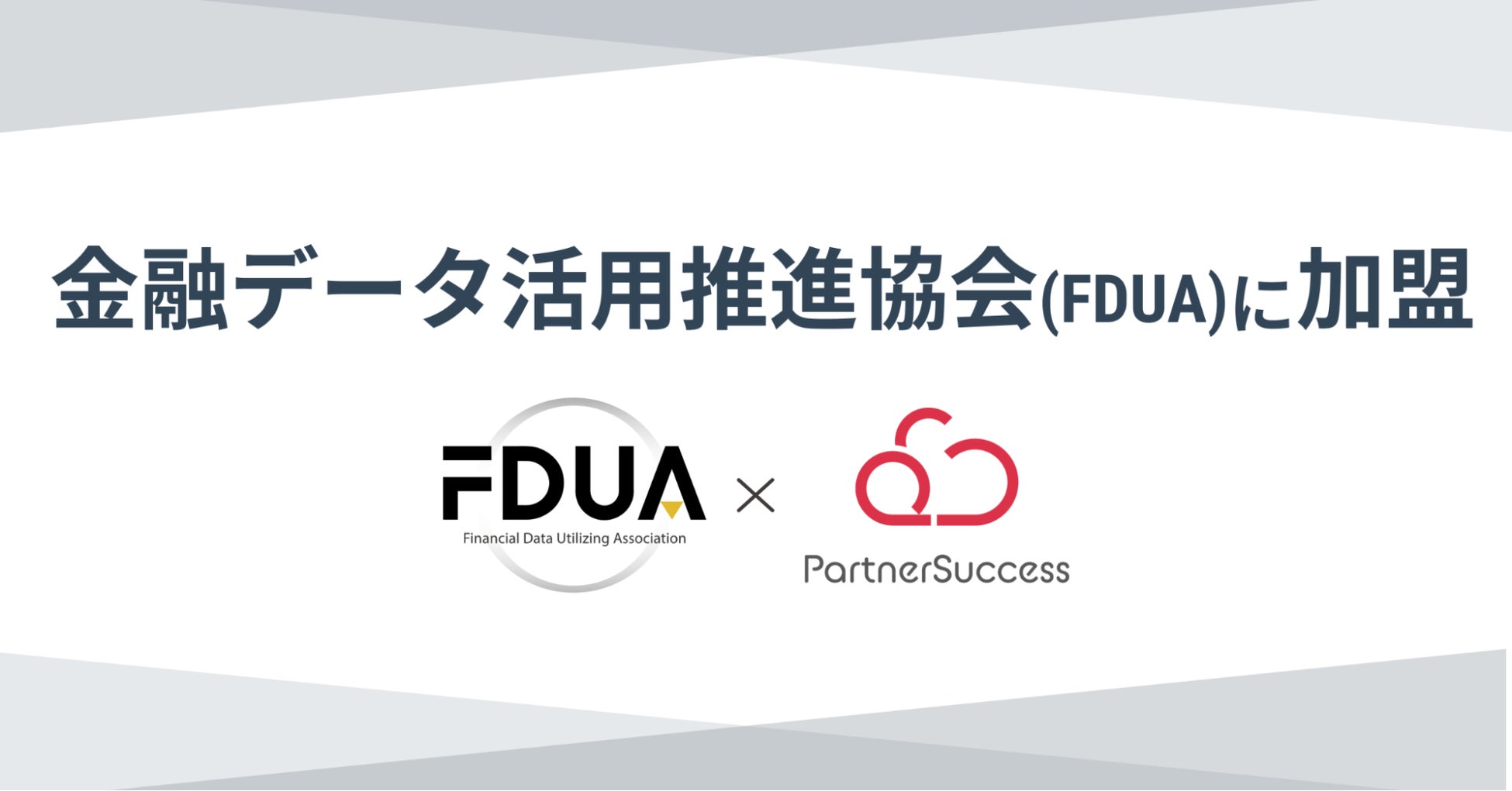 代理店販売で業績を伸ばすPRM(※1)-代理店連携管理クラウド「PartnerSuccess」を開発運営するパートナーサクセス株式会社(本社:東京都港区、代表取締役 永田雅裕、以下「パートナーサクセス」)は、一般社団法人金融データ活用推進協会(以下 FDUA)(https://www.fdua.org/)に特別会員として加盟したことをお知らせいたします。