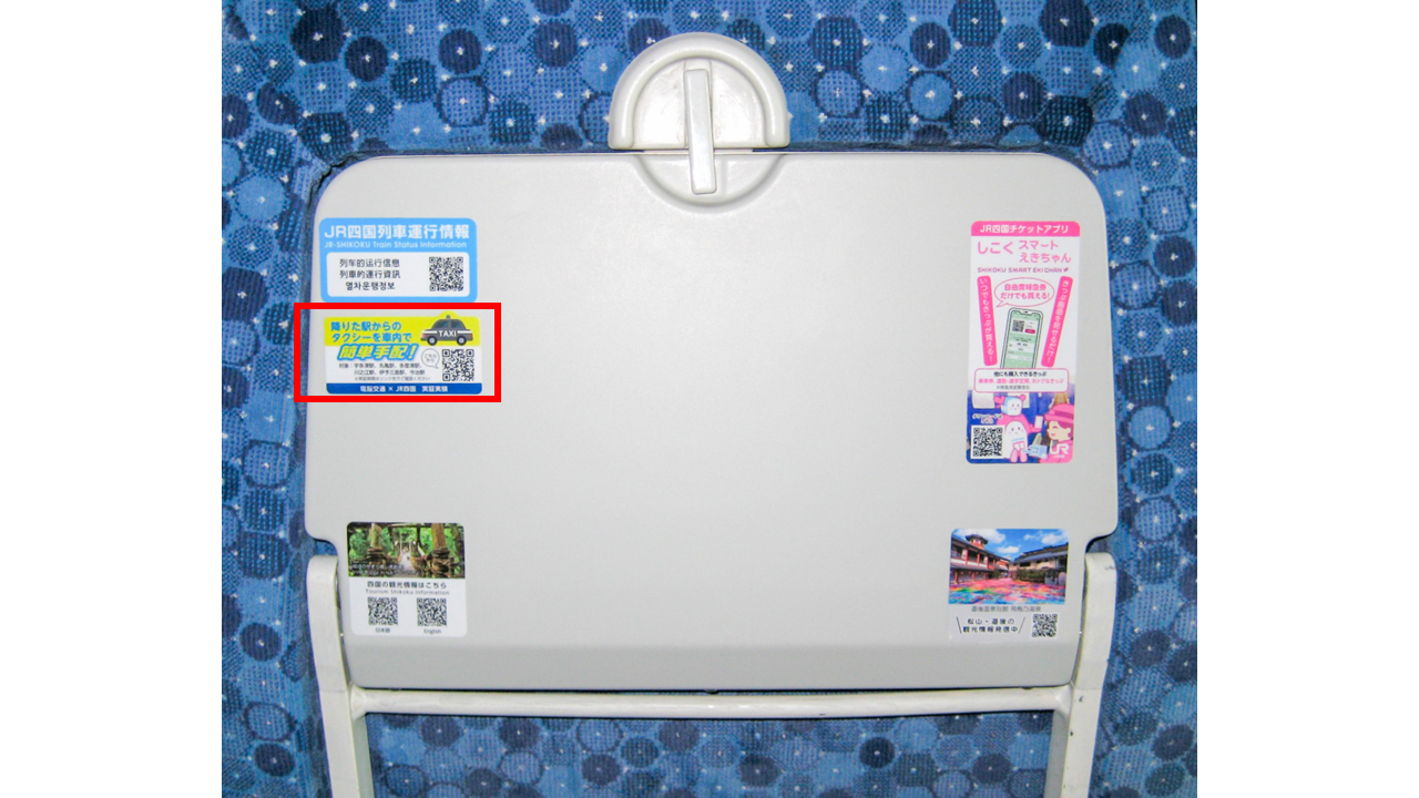 JR四国 | 列車、駅、その他媒体における本サービスの告知等の実施 (列車座席後部に掲示する二次元バーコードステッカーの作成と貼付等) |