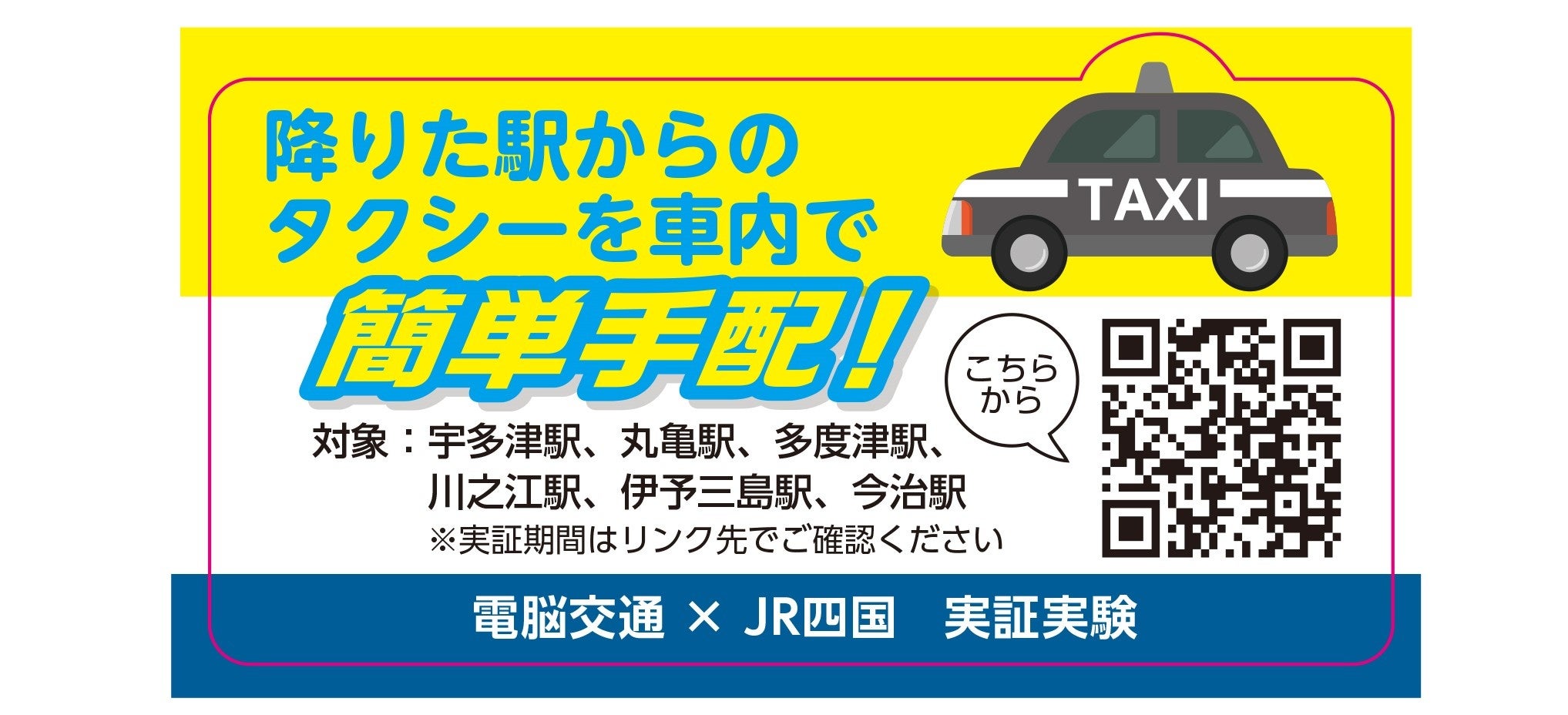 JR四国と電脳交通は、実証実験として特急列車内(8600系・8000系電車)から簡単にタクシー手配できるサービスを期間限定で提供します。