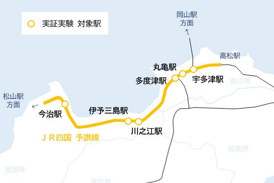 この実証実験は、JR四国 予讃線特急停車駅のうち6駅を対象に2024年6月24日から2024年11月30日までの実施を予定しております。