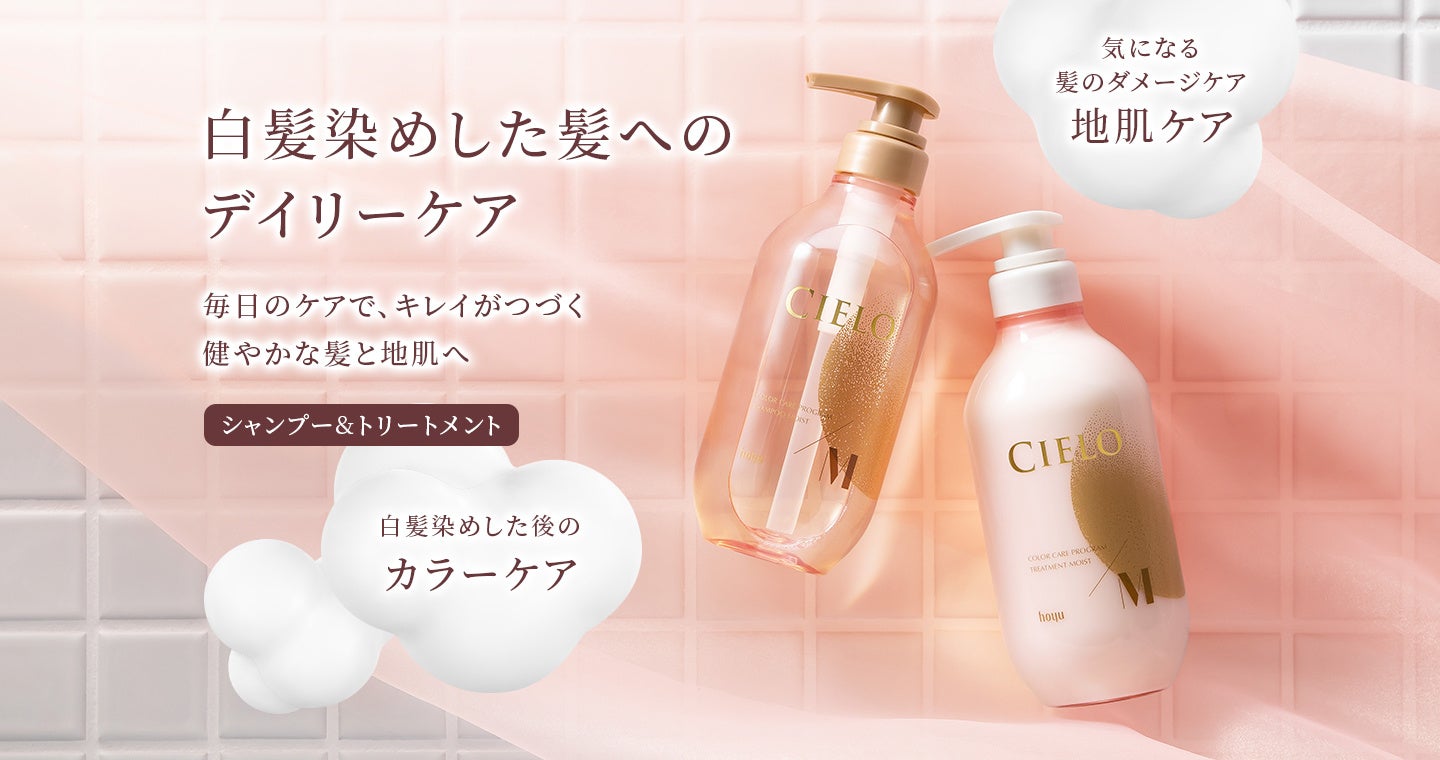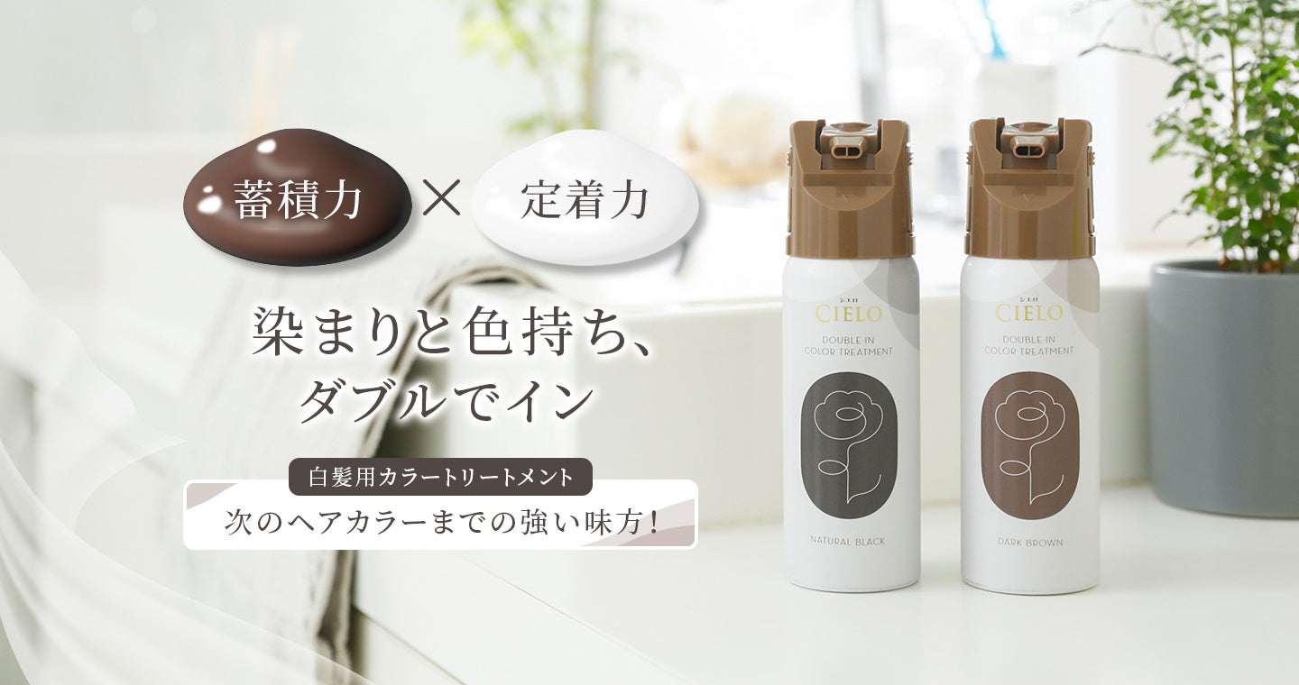 「つづけ、いい髪、いい自分。」をコンセプトに、白髪ケアを通して自分らしいキレイを応援するヘアカラーリングブランドの『シエロ』から、白髪染めした髪のデイリーケアにおすすめの『シエロ カラーケアプログラム シャンプー / トリートメント』と、次のヘアカラーまでの合間つなぎにおすすめの『シエロ ダブルインカラートリートメント』を発売いたします。