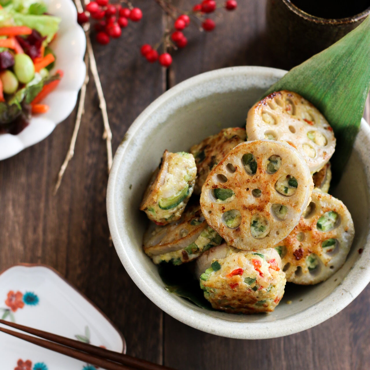 加賀れんこんのシャキシャキもっちりとした食感と甘みが、鶏ひき肉との相性抜群