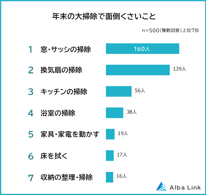 今回、株式会社AlbaLink( https://albalink.co.jp/ )が運営する高く売る不動産( https://wakeari-hikaku.com/ )は、全国の男女500人を対象に「年末の大掃除」についてアンケート調査を実施しました。