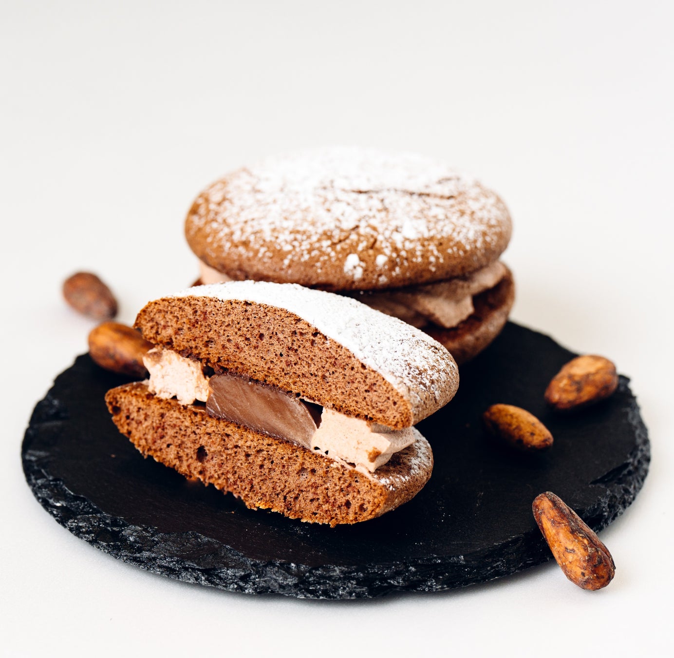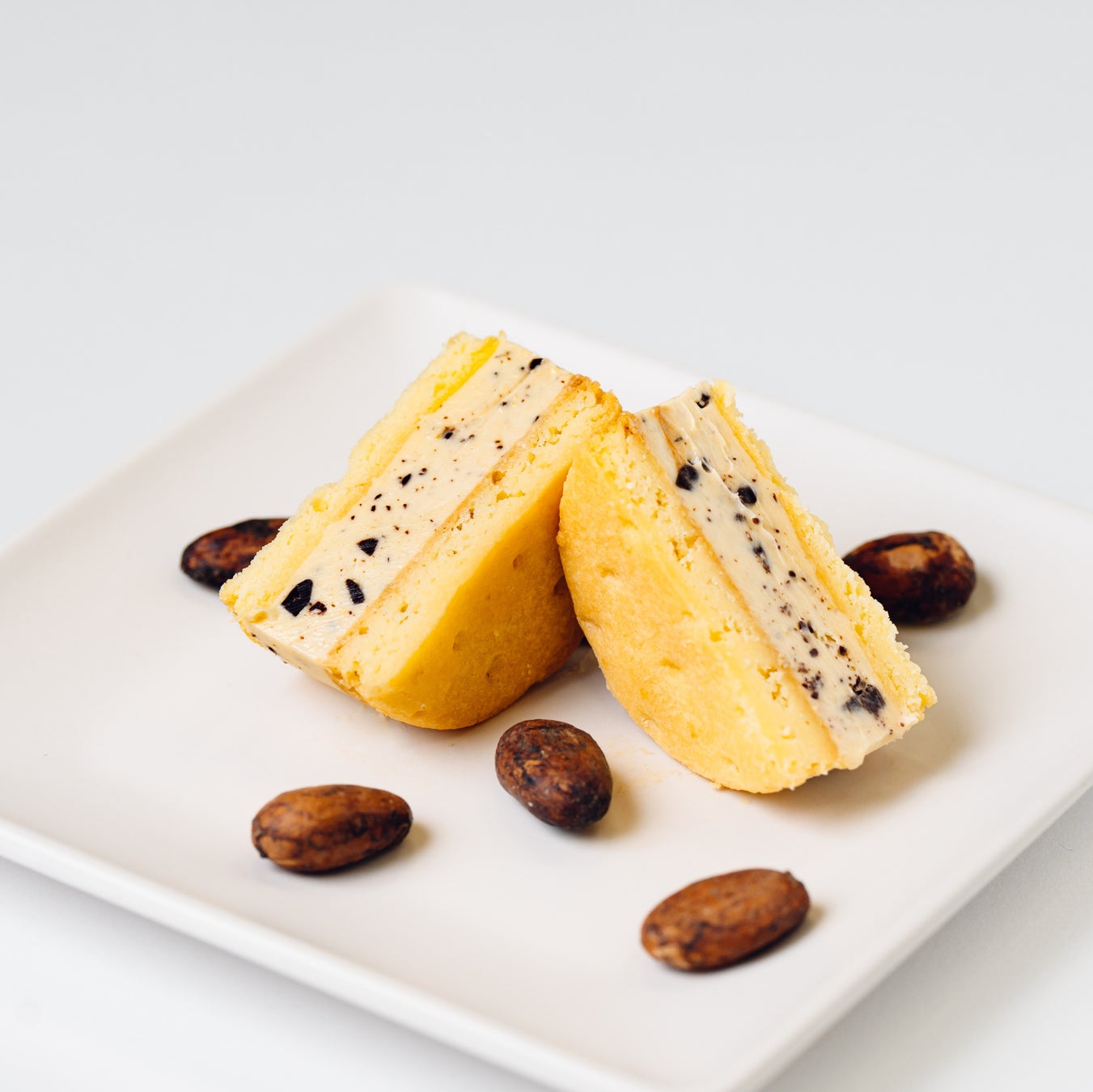 ふんわりスポンジに、なめらかカカオホイップをはさみ、とろけるカカオガナッシュを閉じ込めた、3種の異なるカカオの食感が楽しめるガナッシュサンド。甘さをおさえ、カカオ本来のほろ苦いおいしさが楽しめる大人の味わいです。