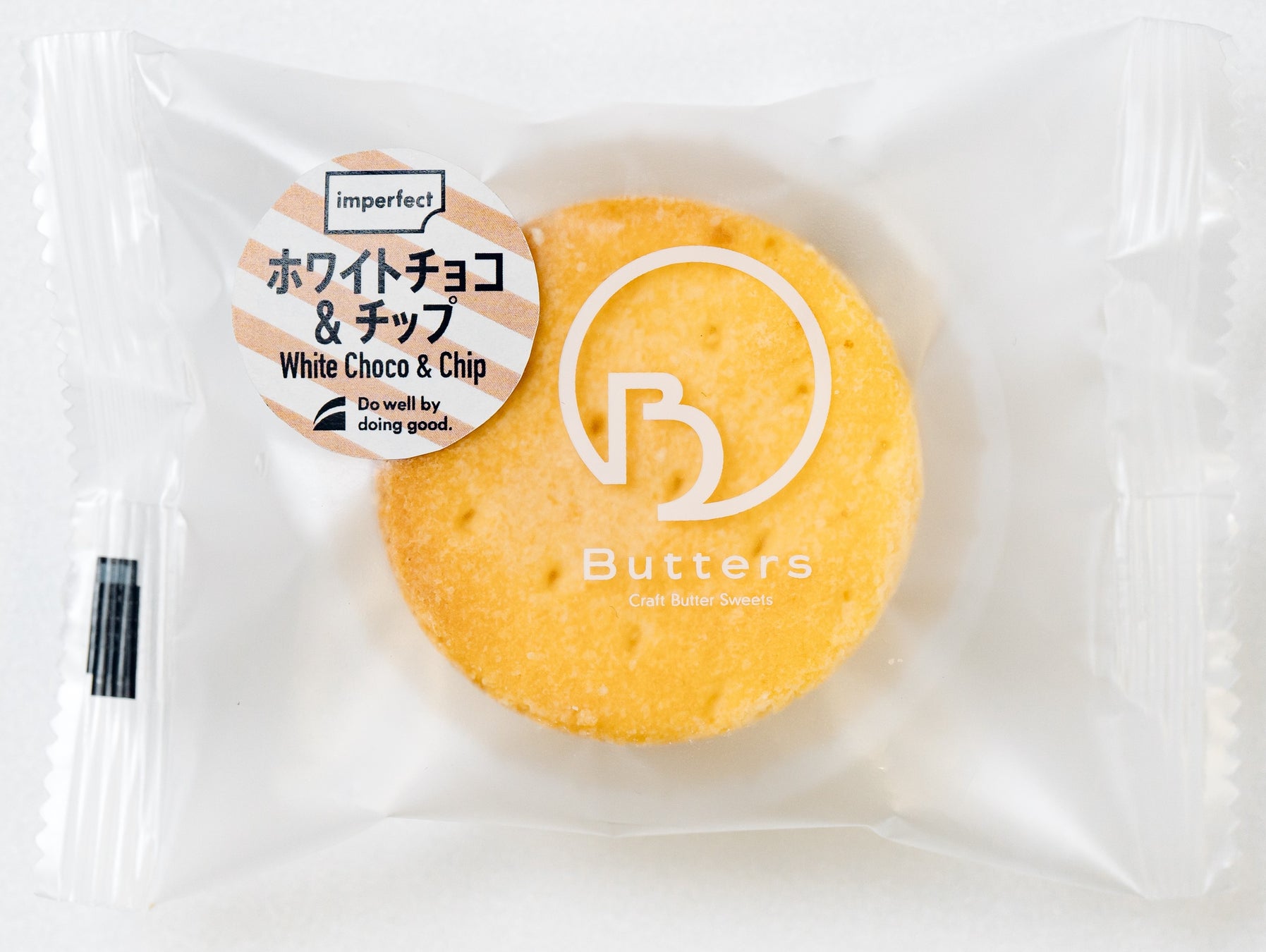 クラフトバタースイーツブランド「Butters」と「imperfect」のコラボレート商品。北海道 バターを贅沢に使用したバタークリームに、imperfectのホワイトチョコとチョコチップを 混ぜ込み、ほろっとした食感のサブレでサンドしました。ホワイトチョコのやさしい甘さとチョコチップの食感が楽しめる、コラボレーションならではの特別なおいしさです。