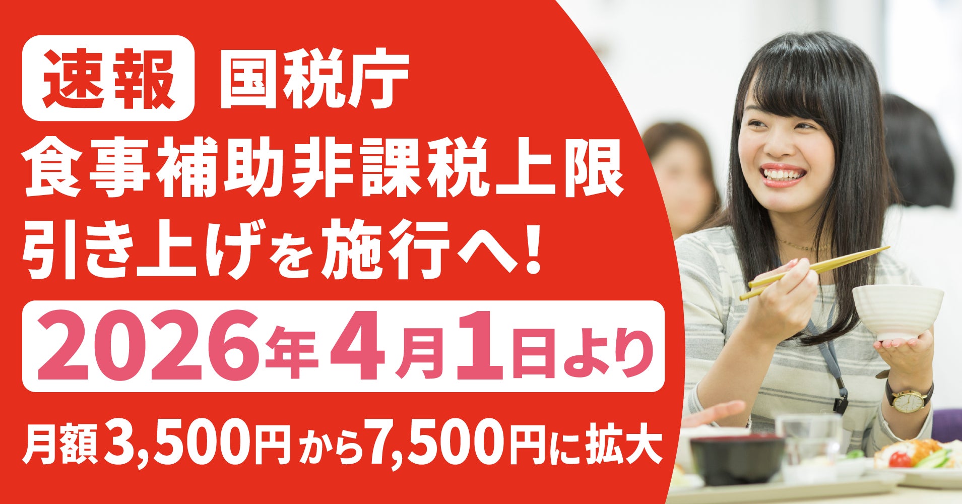 【速報】国税庁、食事補助非課税上限引き上げを施行へ!2026年4月1日より、月額3,500円から7,500円に拡大