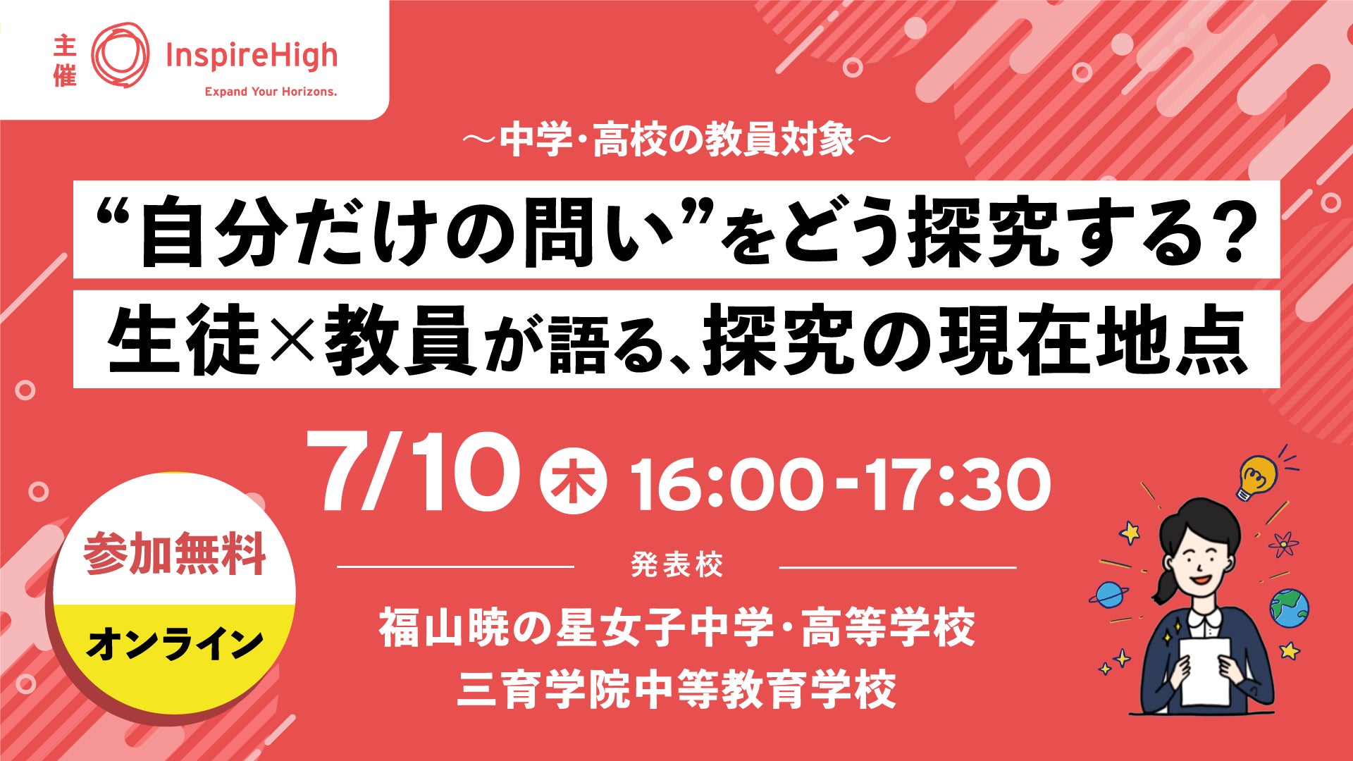生徒と教員が探究の現在地点について語る、中高教員向けオンラインセミナーを7月10日(木)に開催