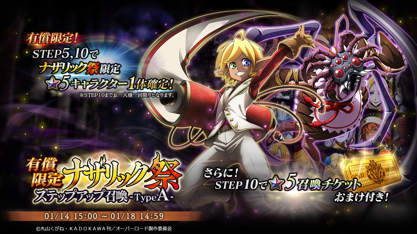 1/14よりイベント召喚『ナザリック祭ステップアップ召喚』を開催!好評につき、TypeA・TypeBの二種で開催をいたします!ぜひ、この機会をお見逃しなくご参加ください!