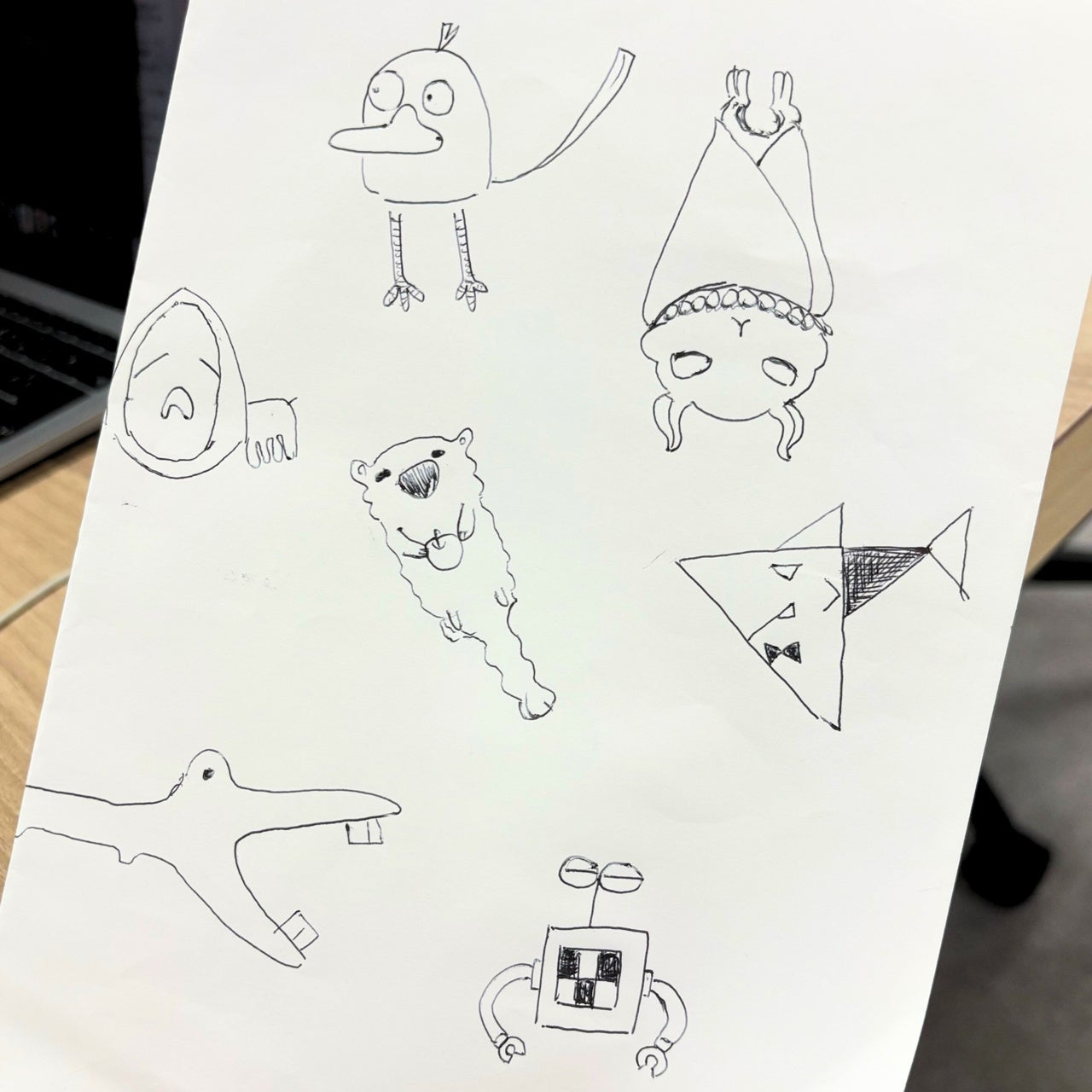 このプロジェクトの発端は、ある利用者のノートの片隅に描かれた落書きでした。プログラミング学習の最中、PC画面に整然と並ぶソースコードとは対照的に、少し居心地悪そうに、しかし自由に描かれたユニークな生き物やロボットたち。