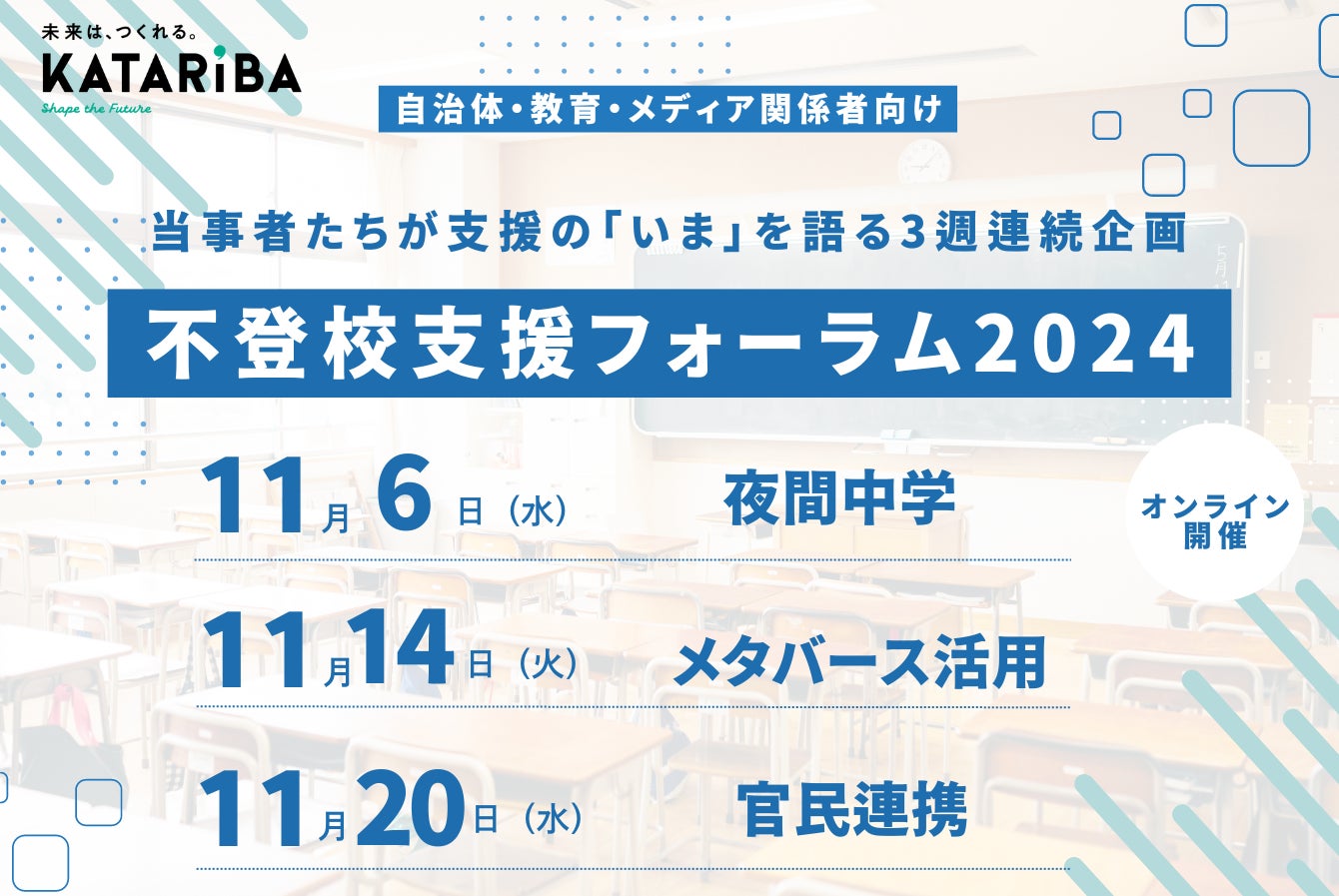 夜間中学に入学した不登校の生徒や、当事者たちが支援の「いま」を語る3週連続企画「不登校支援フォーラム2024」を11月6日よりオンライン開催