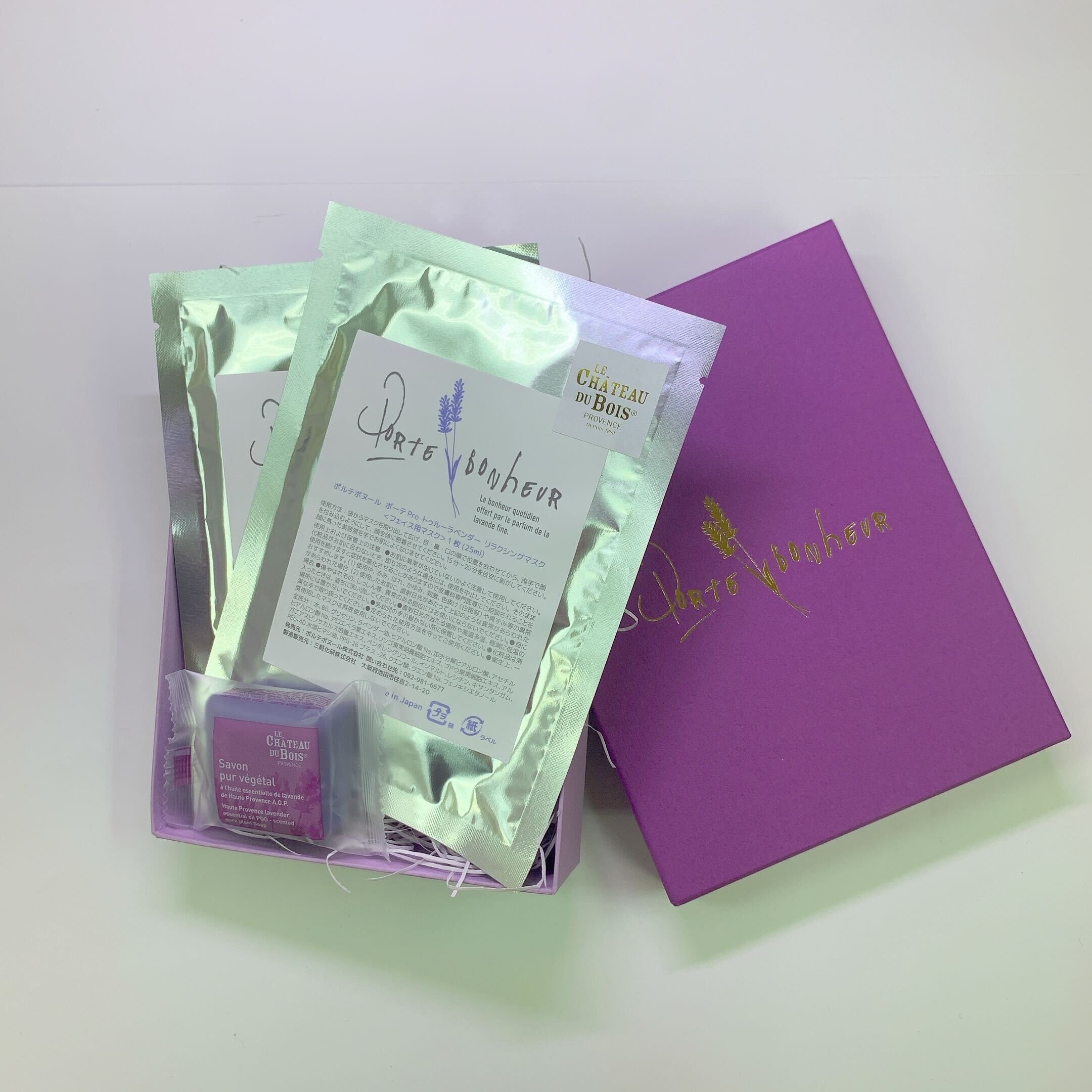 トゥルーラベンダーのプレミアムエッセンシャルオイルを贅沢に使用したフェイス用シートマスクで、リッチなおうちエステタイムを体感できるギフトセットです。