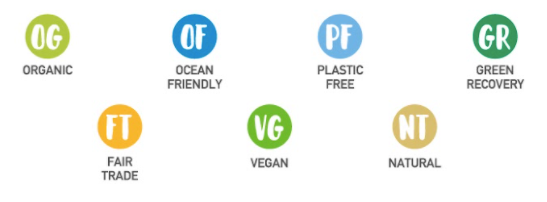 Ethical&SEAのどの商品がどんなエシカル消費に繋がっているのかを、わかりやすくアイコンで表記し、一目で判別できるようにしています。