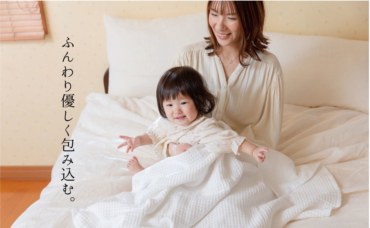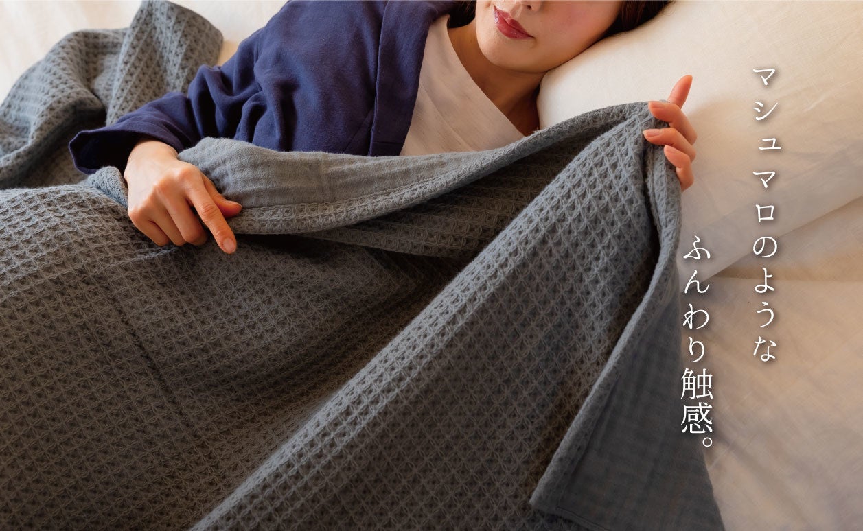 マシュマロのような柔らかさ。天使が紡ぐコットン100%『ワッフルガーゼケッ ト』がクラウドファンディングサイト「Makuake」にて先行販売開始!