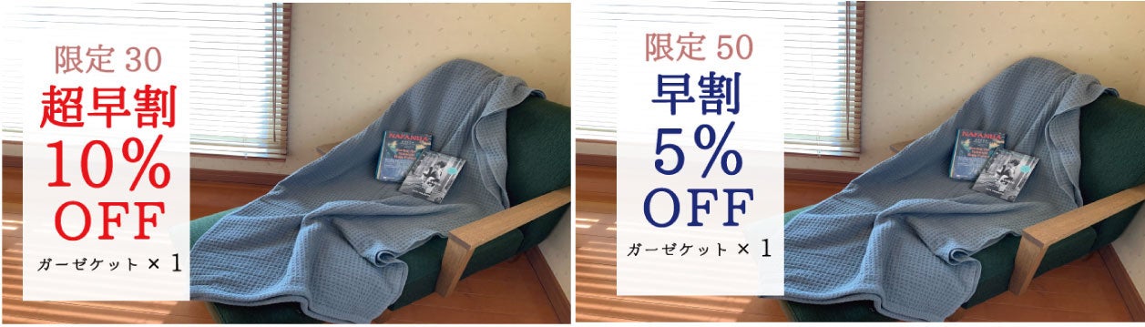 本日2月2日(水)より、クラウドファンディングサイト「Makuake」にて、創業75周年を迎える大阪・泉州のタオルメーカー株式会社成願が、コットン100%ワッフルガーゼケットを先行予約販売開始いたしました!
