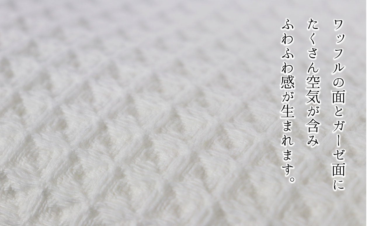 今回、成願が開発したワッフルガーゼケットはマシュマロのような柔らかさを追求し、女性やお子様にぴったりのふんわ~りやわらか至福のガーゼケットです!
