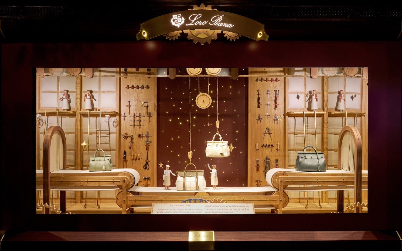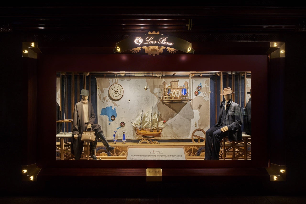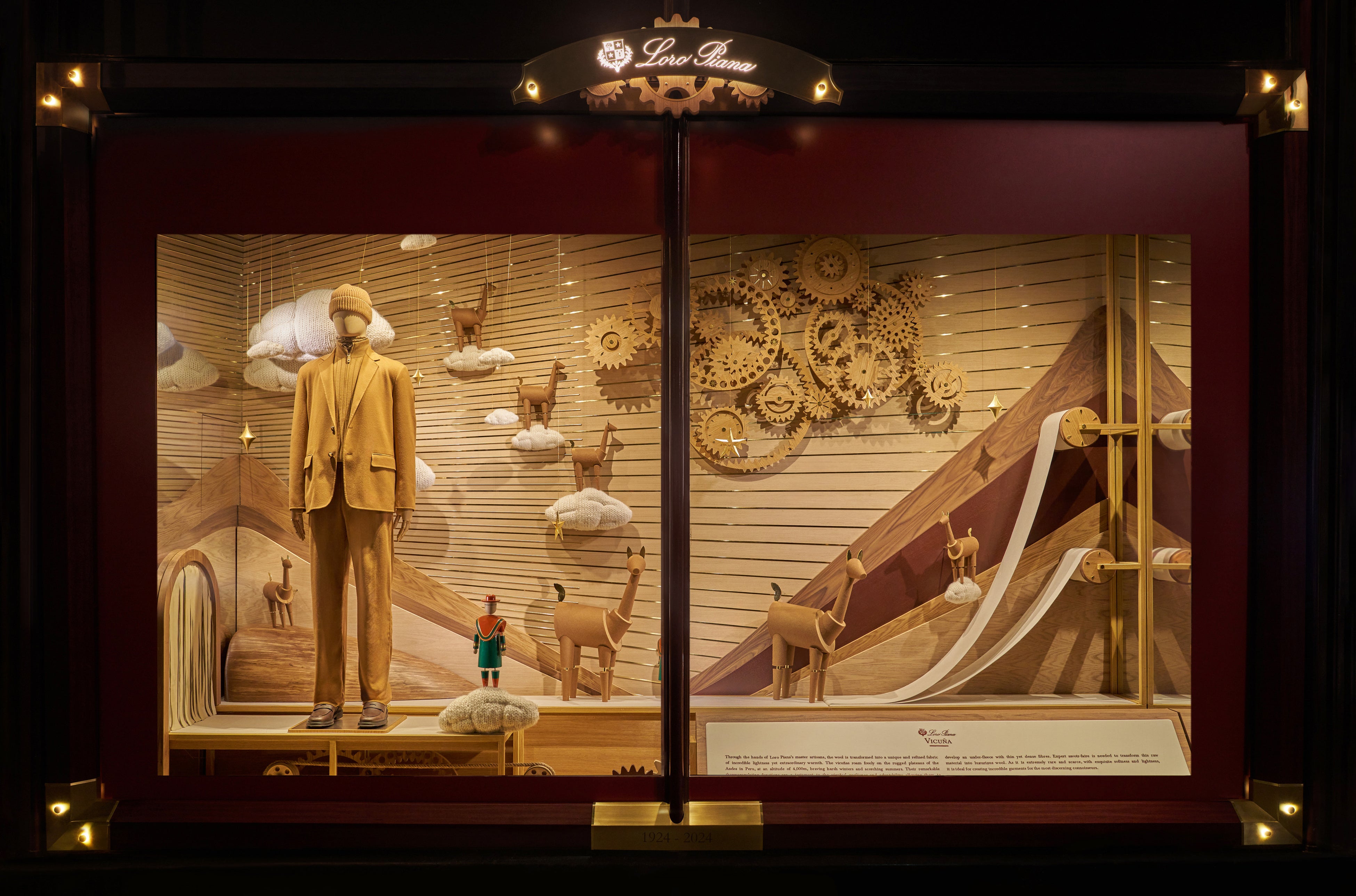 ブロンプトンロードから世界各地まで、ウィンドウはビキューナ、ベビーカシミヤ、ザ・ギフト・オブ・キングス®、ペコラ・ネラ®といった繊維、歴史を刻むアーカイブ、ロロ・ピアーナの紋章、シグネチャーバッグやレザーグッズ、スパーニャ・ジャケットなどのアイコン、そしてオーダーメイドサービスを通じて、ロロ・ピアーナの創業 100 周年と深く結びついたストーリーを織りなします。