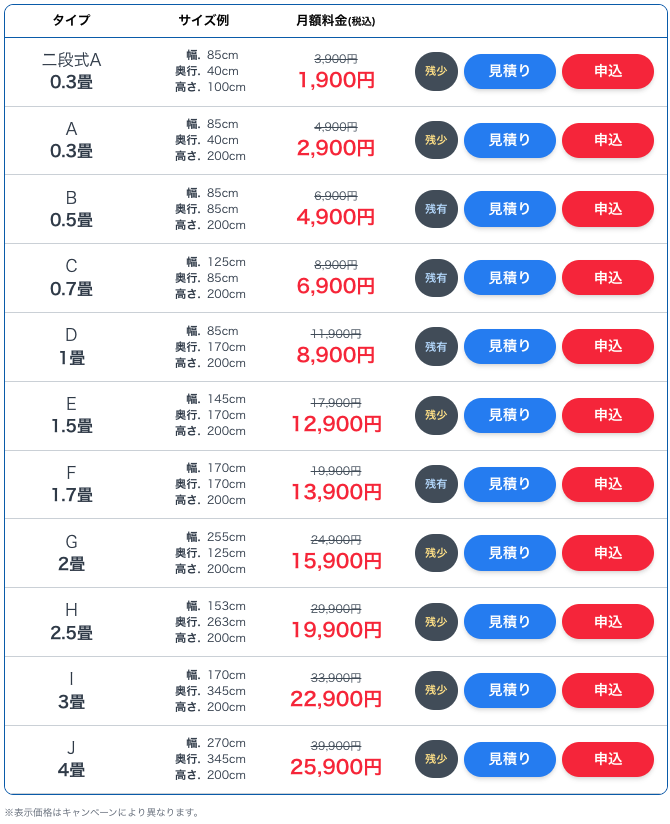 荷物以上に大きな部屋を借りてしまうことや、狭すぎて荷物が入らなかったなんていうトラブルを回避できます。