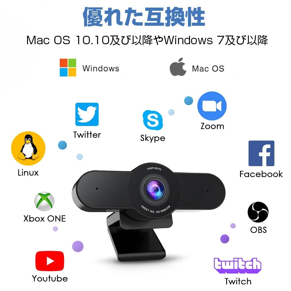 EMEET webカメラはWindows XP、Windows Vista、およびWindows7以降、Mac OS10.10以降などのさまざまなOSに対応可能で、Youtubeといった一般的プラットフォームでの配信に対応できます。