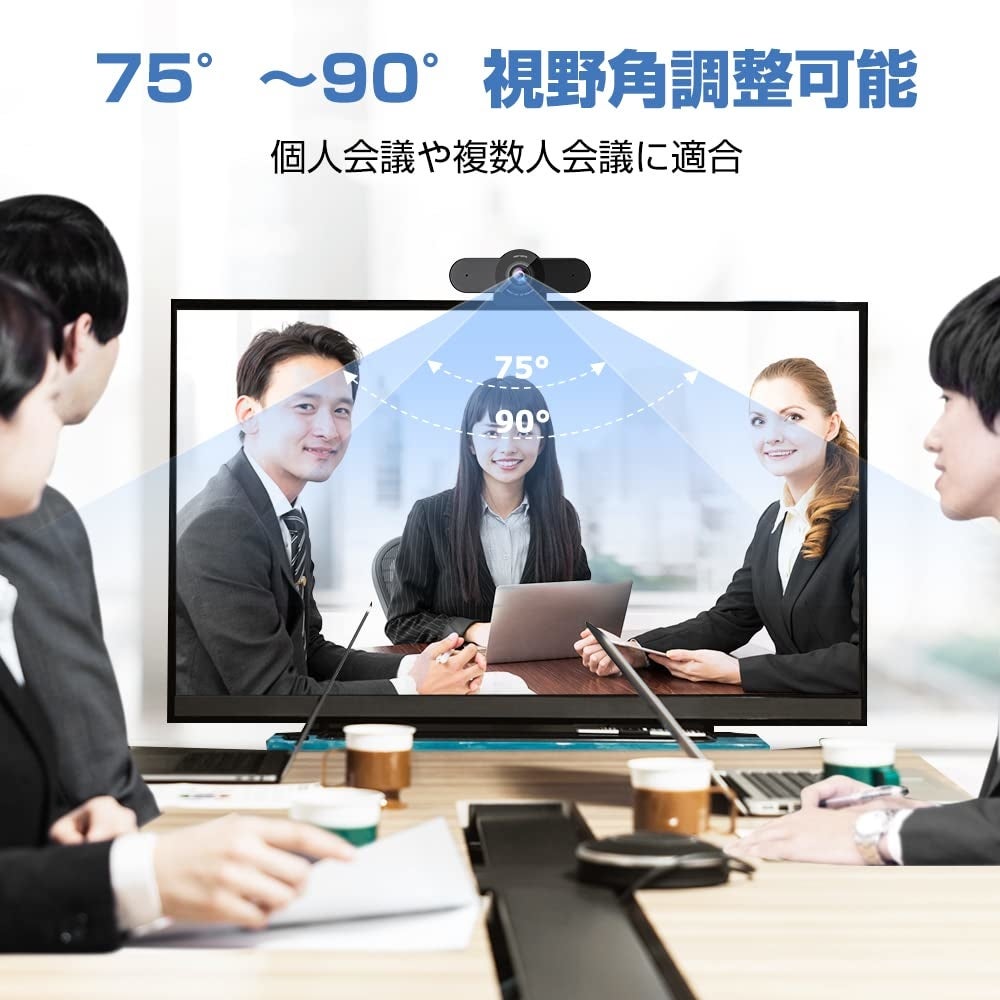 EMEET webカメラはオートフォーカス機能搭載、eMeetLinkソフトウェアで75°~90°調整可能な視野角を備え、個人会議や複数人会議、オンライン授業に最適。