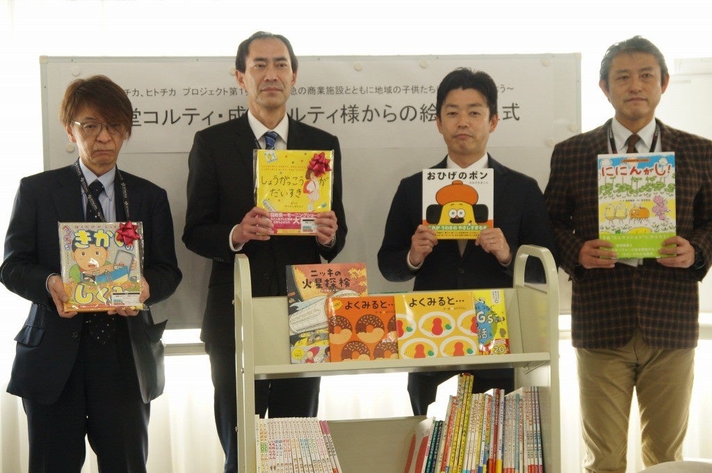 世田谷区立中央図書館は0歳児からの読書を支える図書館として、子どもの読書を支援する取り組みを進めています。これからも、より多くの地域のお子さまに読書を楽しんでもらえるよう、経堂コルティ・成城コルティから世田谷区立中央図書館に、絵本を寄贈いたしました。絵本は今後、経堂図書館へ移動し、経堂地域のお子さまを中心にお読みいただく予定です。