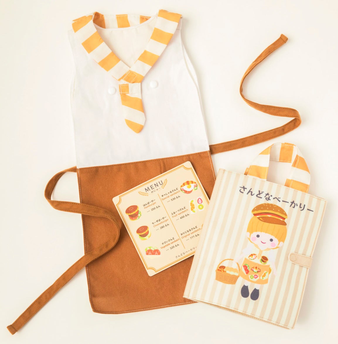 第一弾は、カフェスタッフになりきる『おかしなふくのかふぇ』、忍者になりきり修行をする『にんぽうおてほんちょう』、パン屋になりきり色んなサンドを作る『さんどなベーかりー』の3種を、ナルミヤオンライン(www.narumiya-online.jp)で発売します。