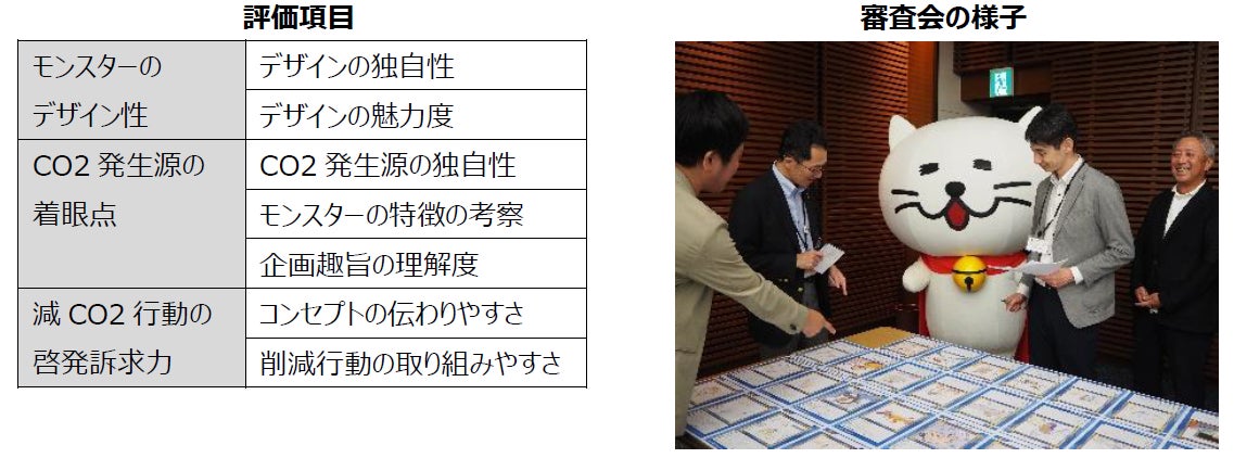 大阪府とGMLが、「モンスターのデザイン性」 「CO2発生源の着眼点」 「減CO2行動の啓発訴求力」の観点から以下の評価項目に沿って厳正な審査を行い、応募総数1,437件(うち審査対象1,417件)の中から最優秀賞1件、優秀賞100件を決定しました。また、三井住友銀行とステッドラーは、これらの受賞作品に対して総評を行いました。