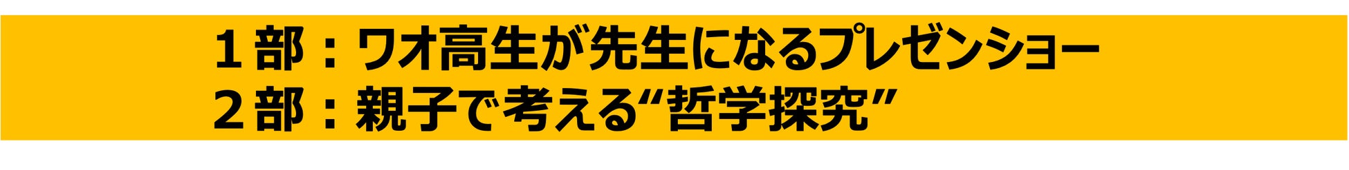 8/5(土) 1部:「ワオ高生が先生になるプレゼンショー」 13:00-14:00 2部:「親子で考える“哲学探究”」14:00-15:00