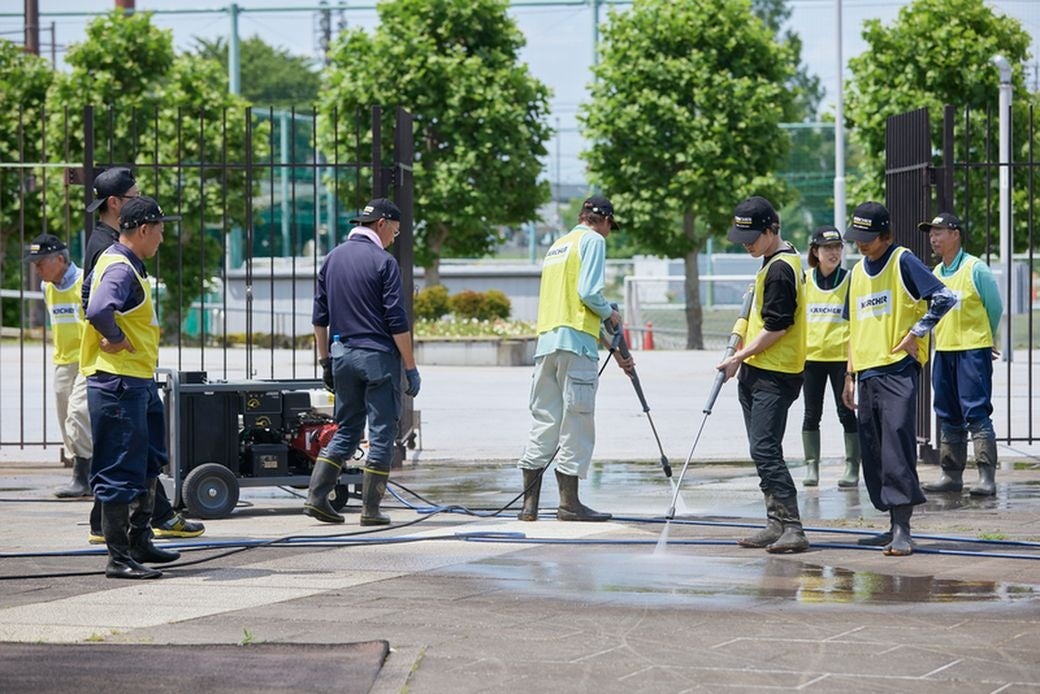 埼玉県が所有する日本最大のサッカー競技場『埼玉スタジアム2OO2』は、今年3月に建設以来初となる大規模な芝の張替えを完了し話題となりました。この度ケルヒャー ジャパンは、グローバルで展開するクリーニングプロジェクトの一環として、スタジアムの顔であり地域の方の憩いの場であるスタジアム北側広場周辺の舗装を、埼玉県と協働で清掃・洗浄いたしました。本プロジェクトにご賛同いただいた地元団体・企業にもご参加いただき、官民連携の地域清掃活動となりました。