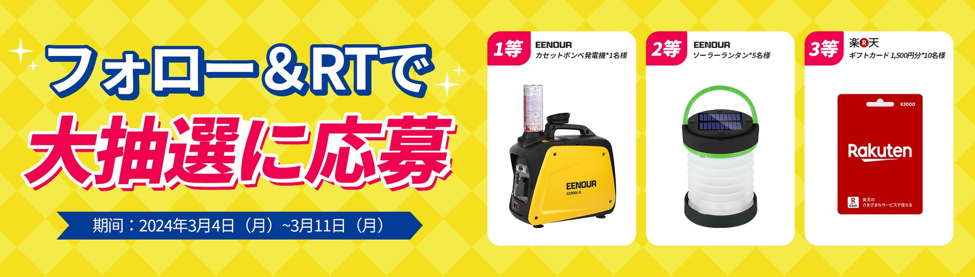 3月4日から11日まで、EENOURポータブル電源やインバーター発電機など生活を支える商品を特別価格でご提供します。