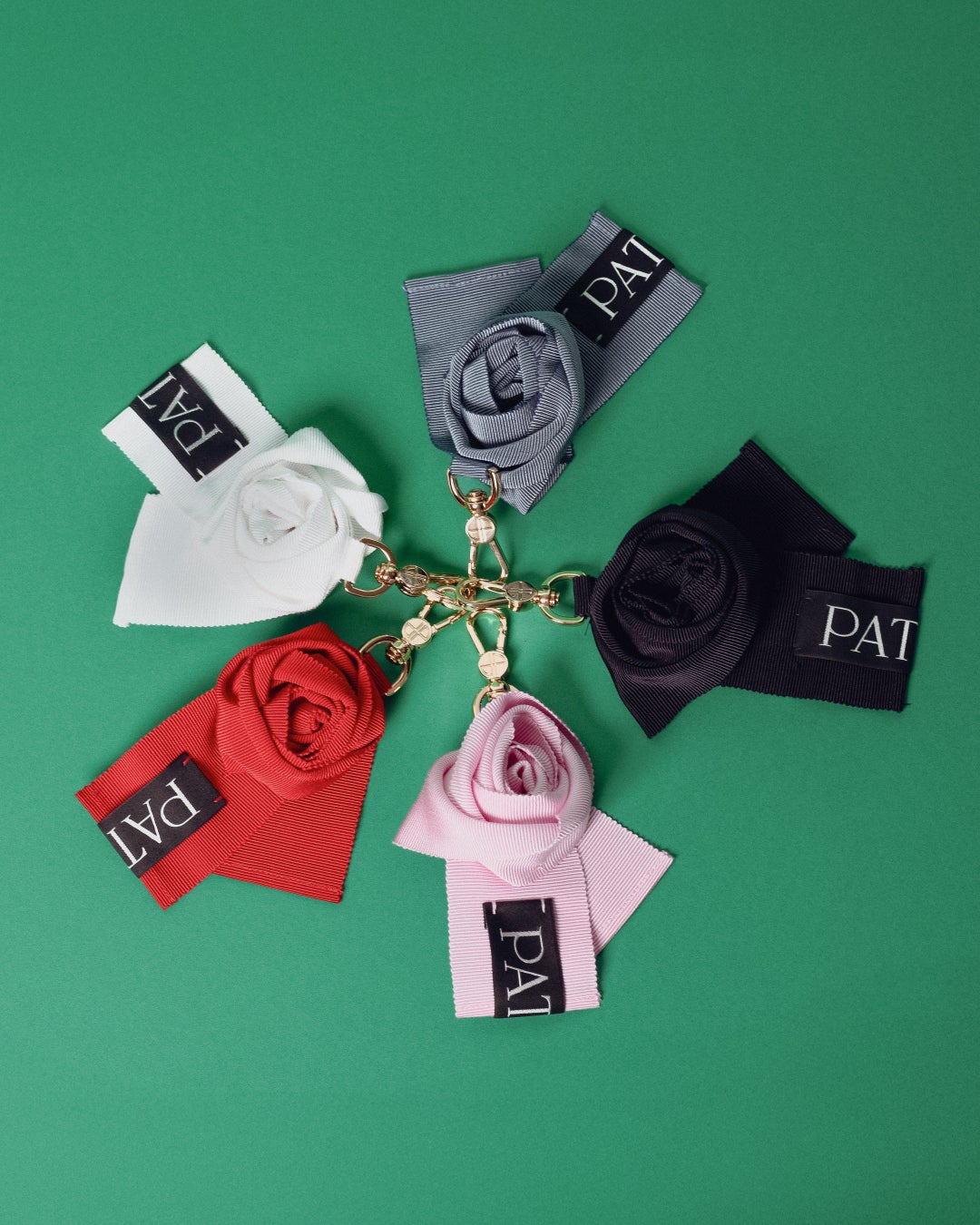 2025年春夏コレクション「ローズ」からインスピレーションを得たハンドメイドのグログランチャームとヘッドバンドは、パトゥのクチュールの伝統と革新への敬意を表しています。これらのアイテムは、「パトゥ」の社内クリエイティブチームと大阪文化服装学院の学生たちが協力して、日本にてハンドメイドで仕上げました。素材には「パトゥ」のスリーピングストックを使用。売上の一部は、「国際NGOプラン・インターナショナル」を通じて、支援を必要とする子どもや女の子に寄付されます。
