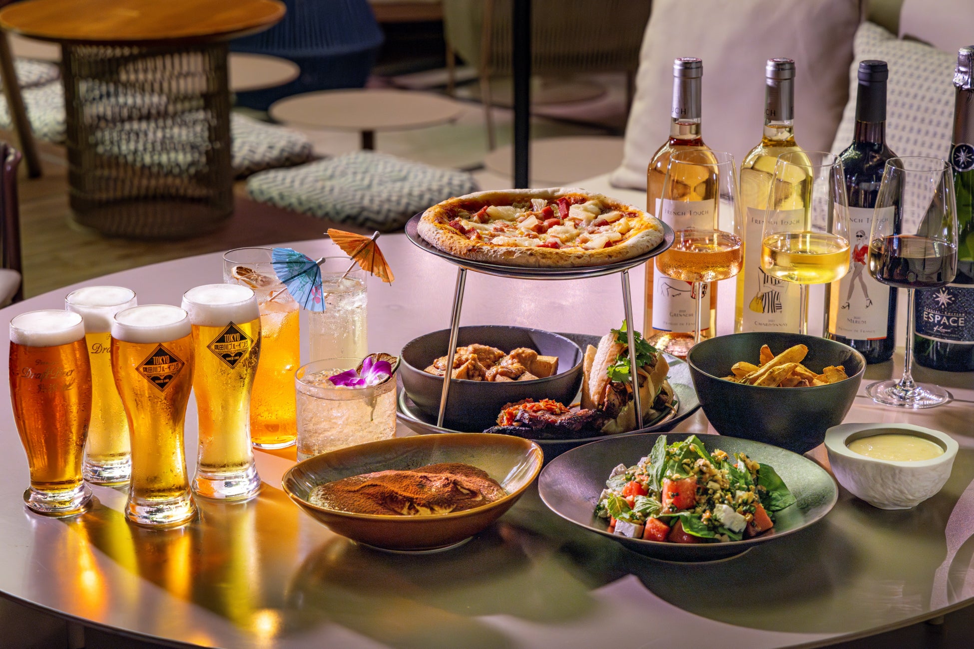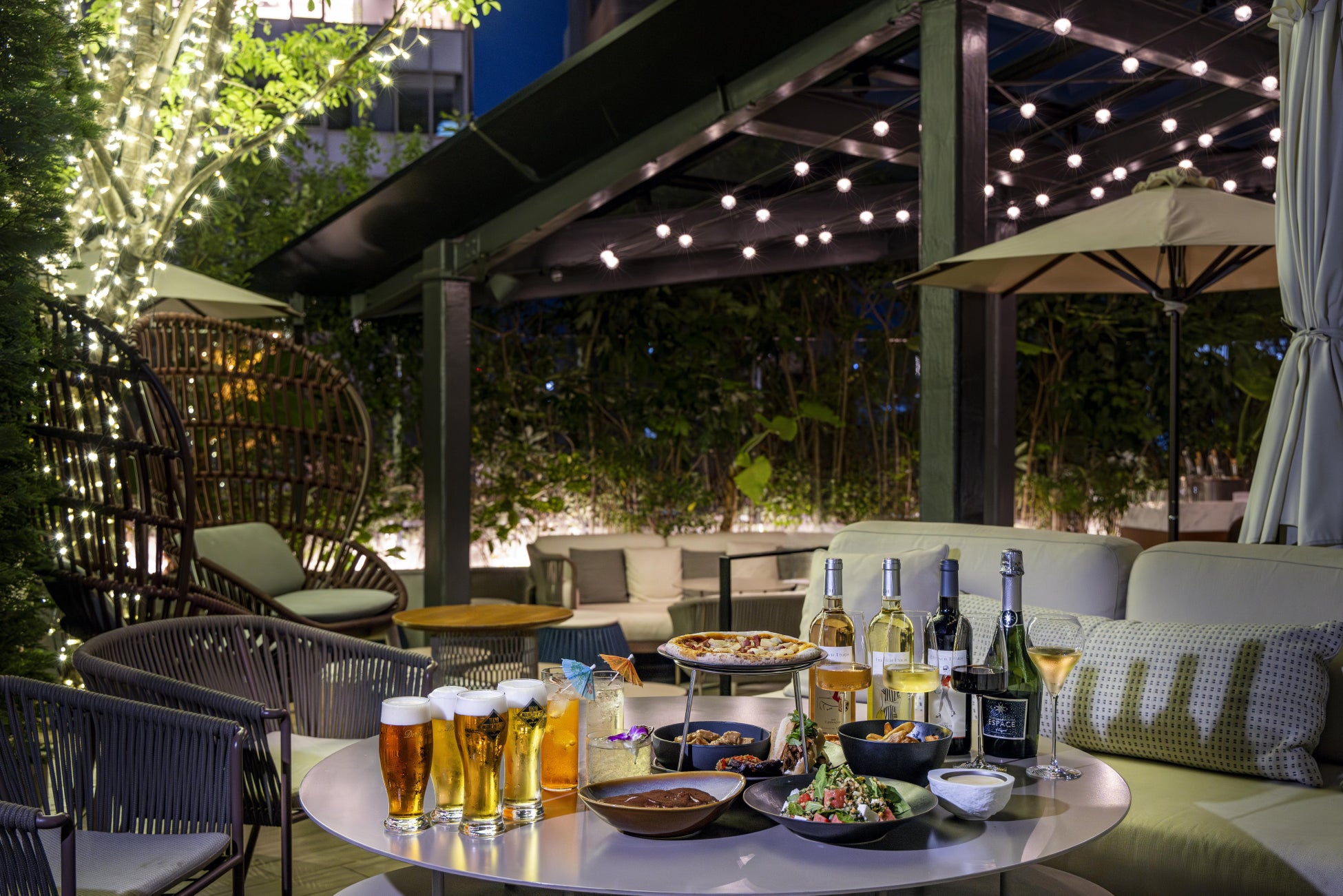 今回も第1弾に引き続き、世界各国のインフルエンスを受けたフードとドリンクをご用意。フレッシュですっきりとした味わいが嬉しいスイカとキュウリのフェタチーズサラダや、夏らしいアイコニックなハワイアンピッツァ、マンゴーチリサルサが乗ったBBQポークなどがバランス良くラインナップ。ドリンクには、クラフトビールからスパークリングワインを含む4種のワイン、ビアガーデン限定カクテルなど、幅広く楽しめる豊富なメニューを揃え、フーディーやワイン好きにも嬉しい内容に。