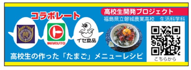 磐城農業高校の生徒がたまごを使った料理を考案し、実際の調理実習で作成したレシピを、たまごのパック内に封入されておりますインパックラベルのQRコードからスマートフォン等で読み取って頂くことで閲覧することが出来る取組です。(パソコン等から磐城農業高校のホームページより特設ページにアクセス頂き閲覧する事も可能です。)