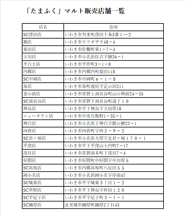 6.販売店舗:いわき地区24店(勿来駅前店除く)販売店名