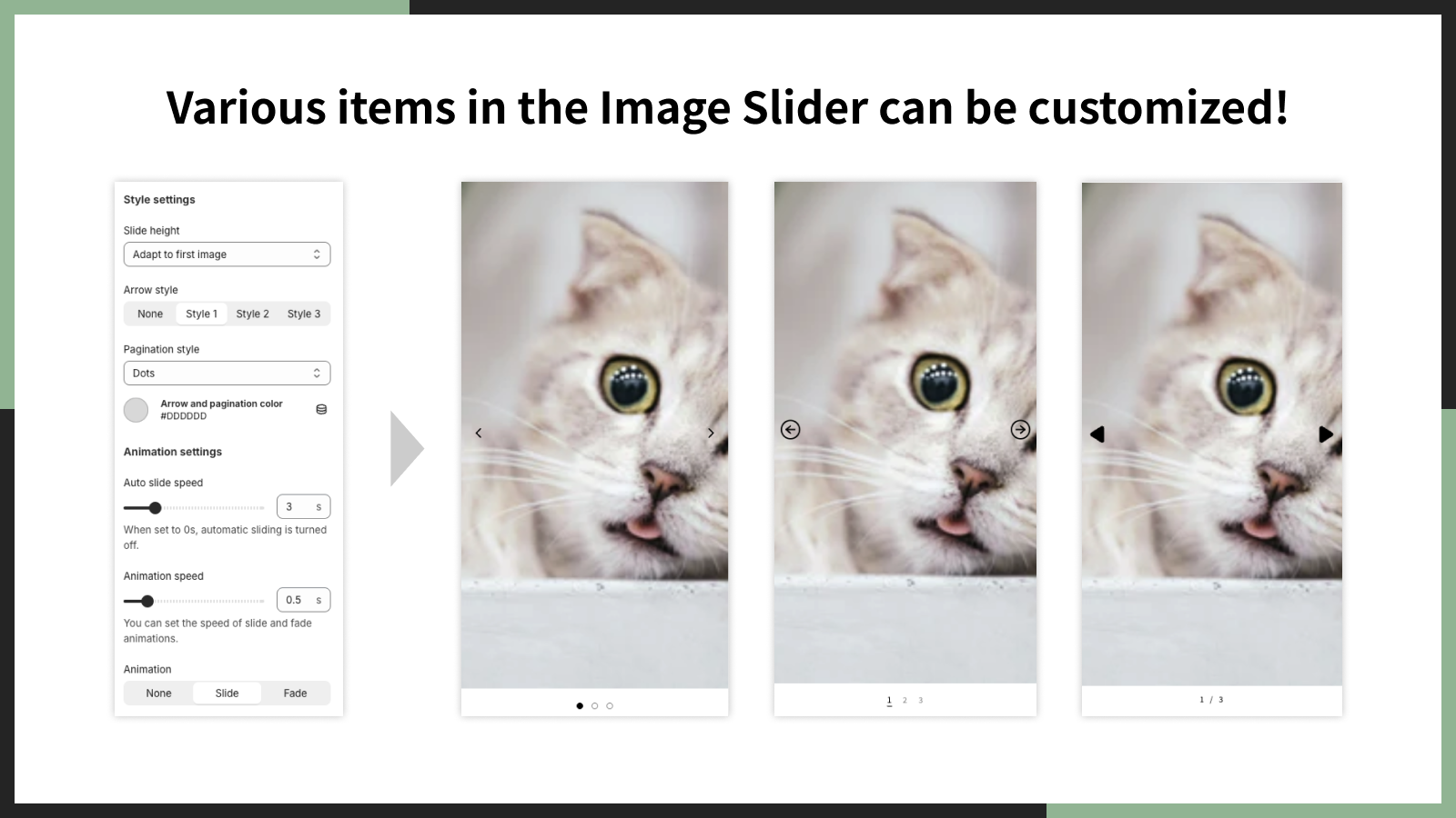 ■ノーコードで画像スライダーの見た目をカスタマイズできる!