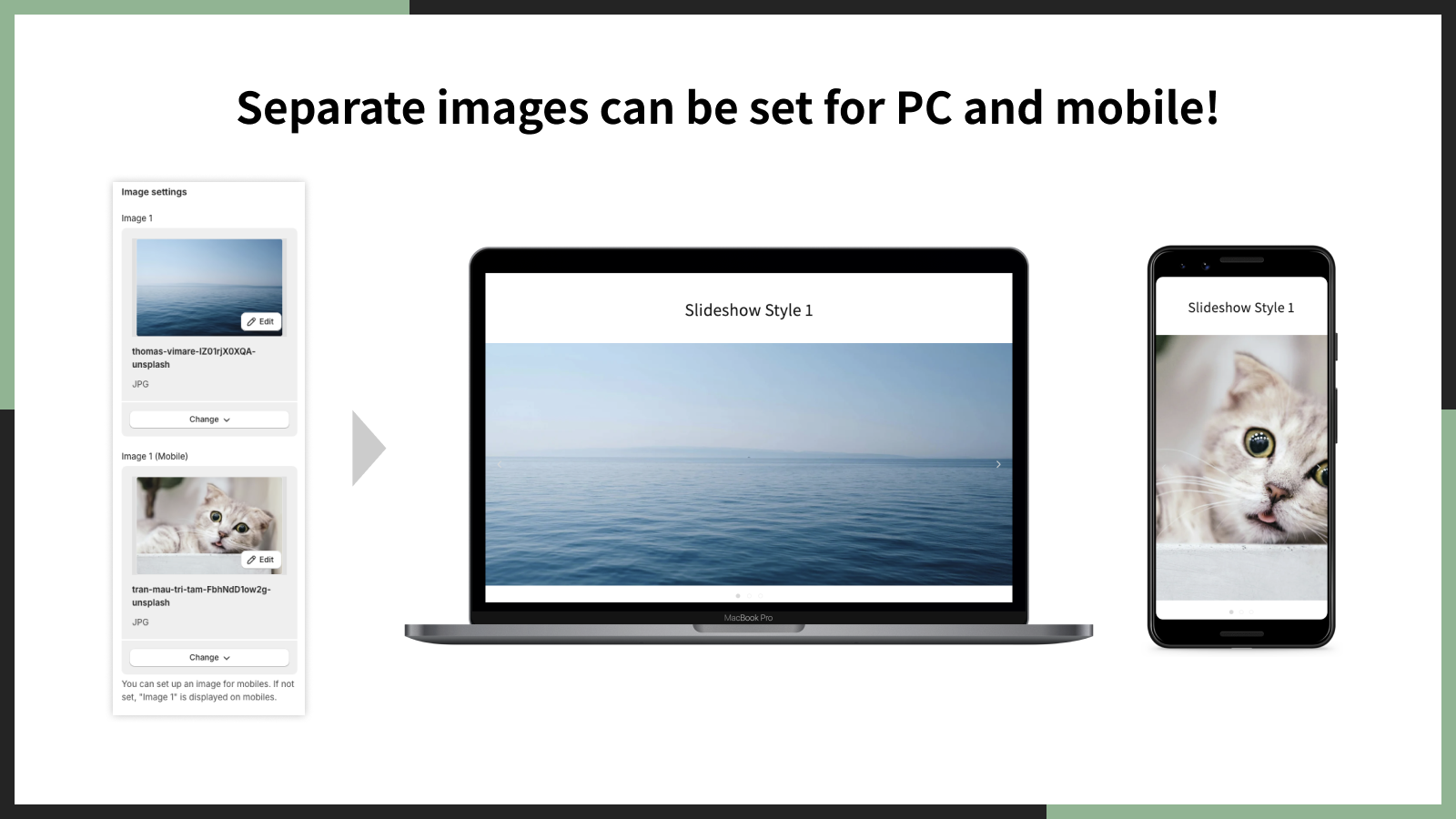 「UR: Smart Image Slideshow」は、PC用とスマホ用に別々の画像を設定できます。