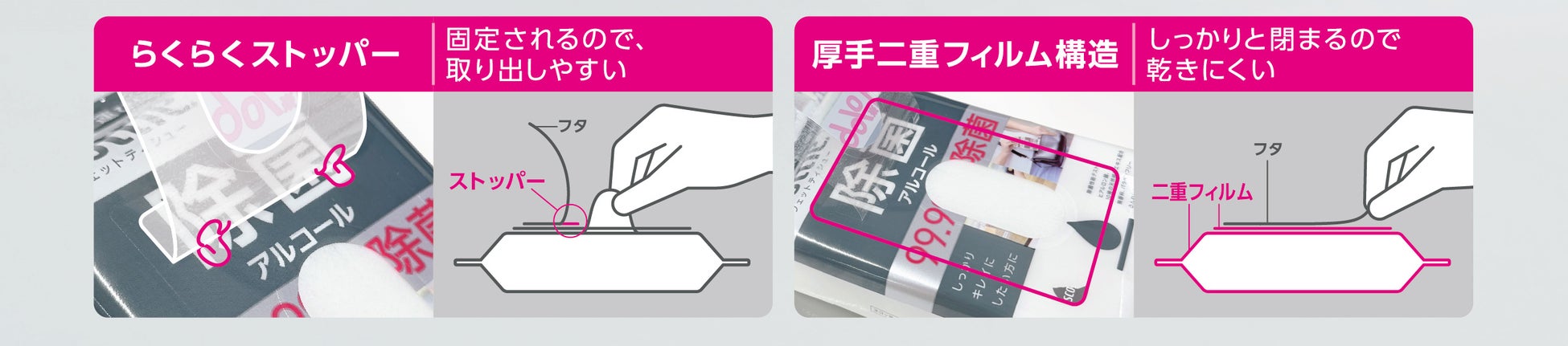 「消毒タイプ」は使用シーンを想起させるデザインにリニューアル!
