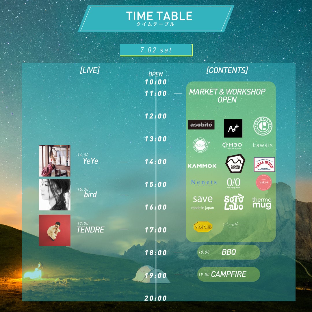 ライヴステージ出演アーティスト:bird、TENDRE、YeYe