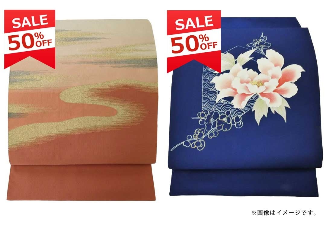 内容:袋帯、名古屋帯50%OFF!!(※都粋商品、一部商品を除く)